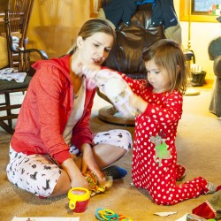 Lilia was up at 5:15AM on Christmas morning, asking to play with the new kitchen from Grandma and Grandpa she spotted under the tree way before the sun was up. She was so engrossed with opening presents this year, much more in tune to the idea of Christmas than she was in 2012. It wouldn’t be a proper Christmas without Grandpa Greg’s homemade cinnamon rolls – he didn’t disappoint – and brandy milk punches were flowing by mid-morning. Luke, Katrina and Owen joined us after Owen was up from his morning nap, Lilia directed present giving and unwrapping until everything under the tree was spoken for. Lots of beautiful and thoughtful gifts, another year gone by, they are going way too quickly…