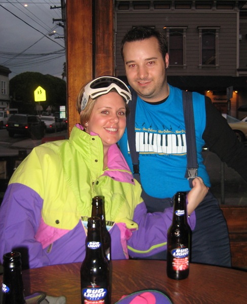 I can’t think of too many more fun ideas for a 30th birthday party than an eighties ski gear pub crawl through San Francisco’s Marina District. Nice one Tracy! As I write this my wife’s asleep on the couch next to me trying to shake off a bad case of alcohol poisoning!