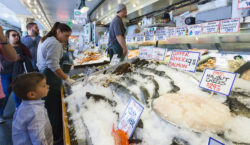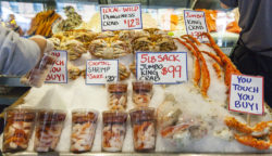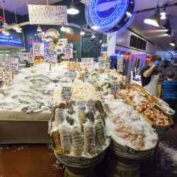 On day two we explored Seattle Center and downtown Seattle. The Boeing IMAX theater at the Pacific Sciences Center was playing a short feature on engineering marvels of the world, was a cool flick, definitely the biggest movie screen either of us had ever seen! Pike Place Market was great, so many colors and smells. Was fun to see the original Starbucks across the street from the market entrance. Highlight was Max getting in quite a heated argument with one of the bearded fishmongers about the difference between thongs and sandals (he was wearing a pair of Havaianas). The crowd and especially the fishmonger were killing themselves with laughter with Max emphatically arguing that he was wearing thongs and not sandals. The fishmonger took such a liking to Max he gave him a fistful of fresh smoked king salmon, had to be more than $10 worth of fish, Wild Man was in heaven gnawing on it!