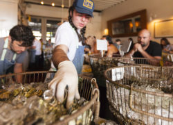 We capped off our trip with a sojourn to Ballard – home of the famous Ballard Locks – to The Walrus and the Carpenter. The Walrus is a raw food bar specializing in local seafood. I wasn’t so sure Max would appreciate it – he doesn’t quite have his sister’s palate – but he loved sitting up at the bar where he could see all the action. He wasn’t so keen on the cured salmon, but downed the house-cured oysters and I struggled to get a bite of the pork belly confit. He was in heaven with the maple bread budding with whipped cream to finish our meal. Great spot in the industrial area of Ballard, will definitely take the rest of the family if we’re every in Seattle all together.