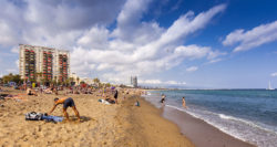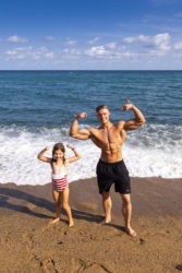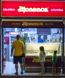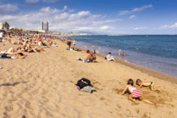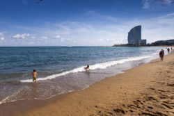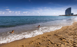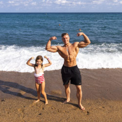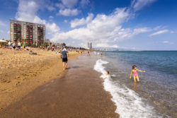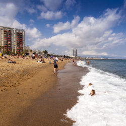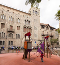 We took an early train to the Basque country after our night in Sants, an awesome week of food, sun, beaches and culture up there in northern Spain. Upon returning to Barcelona we moved base to another apartment hotel in the heart of the Gothic Quarter, quite a strikingly different feel to laid back Sants in central Barcelona. Endless traffic, a heavy tourism influence and throngs of people everywhere… We headed to the beach for a swim in the Mediterranean, I’d hate to see the city beaches in the peak of summer: even on a Thursday afternoon in late September the sand was absolutely packed. Kids had a ball paddling in the surf and catching a wave here and there, an ideal spot for people watching with everything from Africans hawking fabrics, to scantily clad locals, and even Middle Easterners peddling cocktails and bar snacks. Both kids were mesmerized by a group of three Russian bodybuilders on the beach near where we’d set up camp for the afternoon, Lilia eventually mustered the courage to ask one of them to flex next to her, he was quite happy to oblige. Classic.