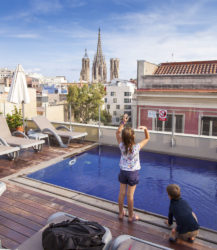 In additional to regular hotels in Spain, I found that there are quite a few apartment-style hotels in Barcelona, which suited us perfectly. Our little spot in the Sants district had a couple of bedrooms and a lounge, was quite reasonably priced and is directly across the street from the main Barcelona Sants train station. We made pretty quick work of immigration and getting out of the airport, dropped our bags at our apartment and went for a stroll to Plaça d’Osca and its selection of tapas bars. Sants is quite off the main tourist track in Barcelona, so was quite cool to see all the locals out enjoying the Friday afternoon. Very laid back lifestyle in Spain, was refreshing to see hardly anyone gazing down at their smartphones, let alone walking into you because they’re looking down at their screen (a regular occurrence in San Francisco). I had a few beers and we selected a few tapas as the sun set, the kids quite happy to run around the plaza and kick a soccer ball with some of the local kids.