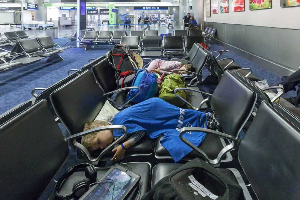 It certainly started out on a somber note: text messages from American Airlines that our flight was delayed one hour, two hours, three hours and finally six hours… We eventually took off six hours and eight minutes late, which put us into Miami International Airport at 3:17AM. It was a toss-up as to whether it was worth exiting security with our carry-on bags, catching an Uber/Lyft and making our way to the hotel we’d booked only to return five hours later for our flight to Guadeloupe. In the end I was so shot that I found a reasonably quiet gate, pushed some benches together and set the kids up for a sleep until we were due to board our next flight. It’s amazing how resilient they are.