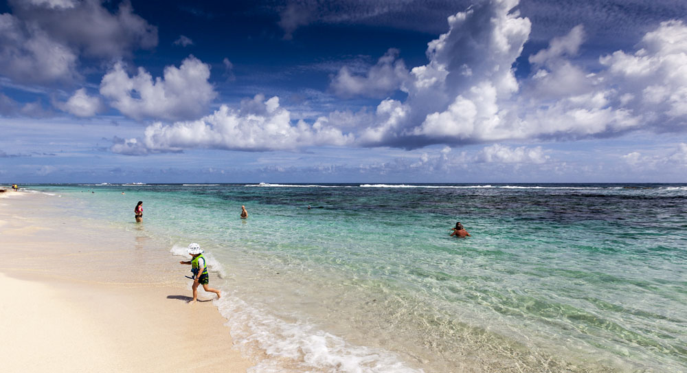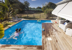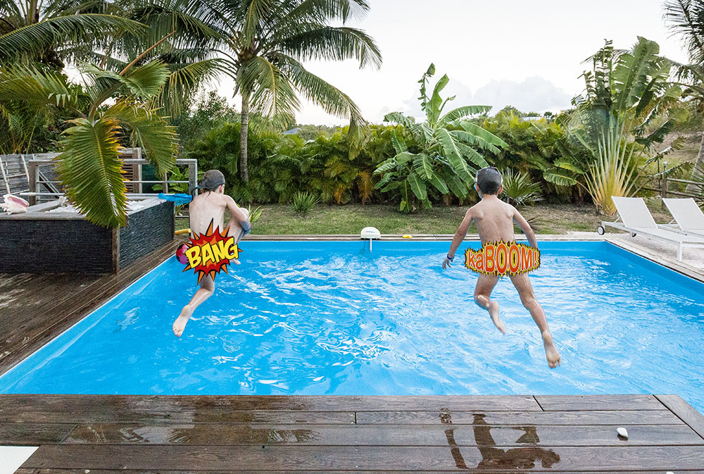 When we finally rendezvoused with Lisa after her work week in Florida, we boarded our jet to Guadeloupe – which thankfully departed on time – and were treated to a majestic flight across the islands of the Caribbean. The Exumas, Puerto Rico and finally Montserrat before we touched down in Point-A-Pitre. Roughly an hour’s drive along the southern coast of Grande-Terre took us to our abode for the next eight days in the bustling seaside town of Sainte-Francois. The kids were in the pool within a few minutes of our arrival, we weren’t too far behind!