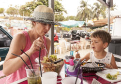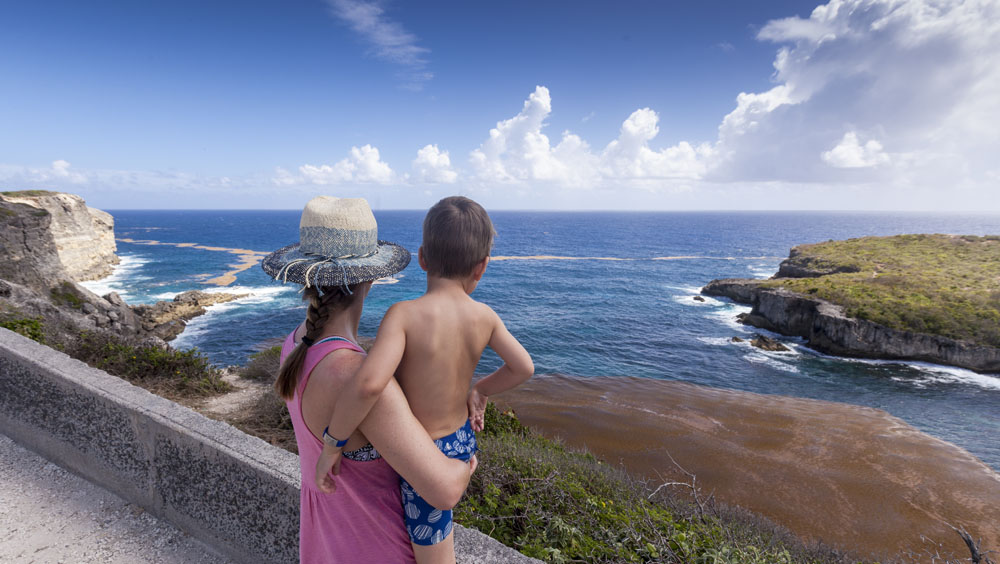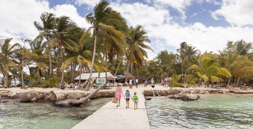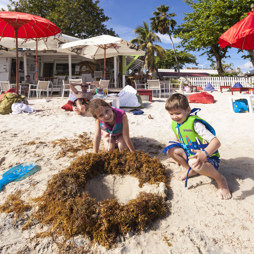 While in Le Gosier we also had a paddle at the town’s main beach – La Datcha – and enjoyed lunch at a beachside burger bar where Lisa finally found a salad, something she’d been craving for a few days. Unfortunately the greens put her stomach out of commission for about 24 hours and had her remaining in close proximity to a bathroom. Note to self: when in Rome, eat like the Romans… The southern facing beaches of Grande-Terre, while boasting silky smooth, white sand, were a bit of a collection point for seaweed during our stay but that didn’t stop the kids from having a ball every time they found themselves in the water. Îlet du Gosier is a small island in the bay across from La Datcha, a boat runs back and forth between town all day and for a few euros we hopped aboard and spent the afternoon exploring the reef and beaches of the key. The coral and sea life a few hundred meters from the beach was amazing. One thing to keep in mind: no toilets on the island even though there is a fully-fledged restaurant and bar. When Lilia wanted to relieve herself we were told “the forest!” Lovely.