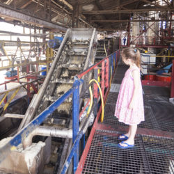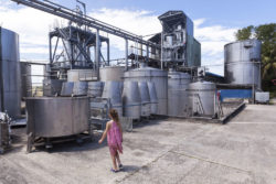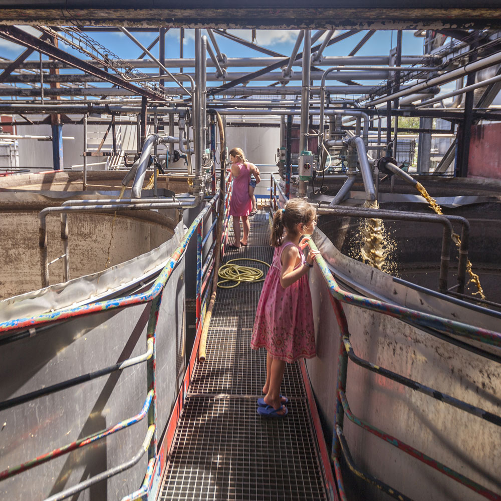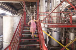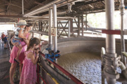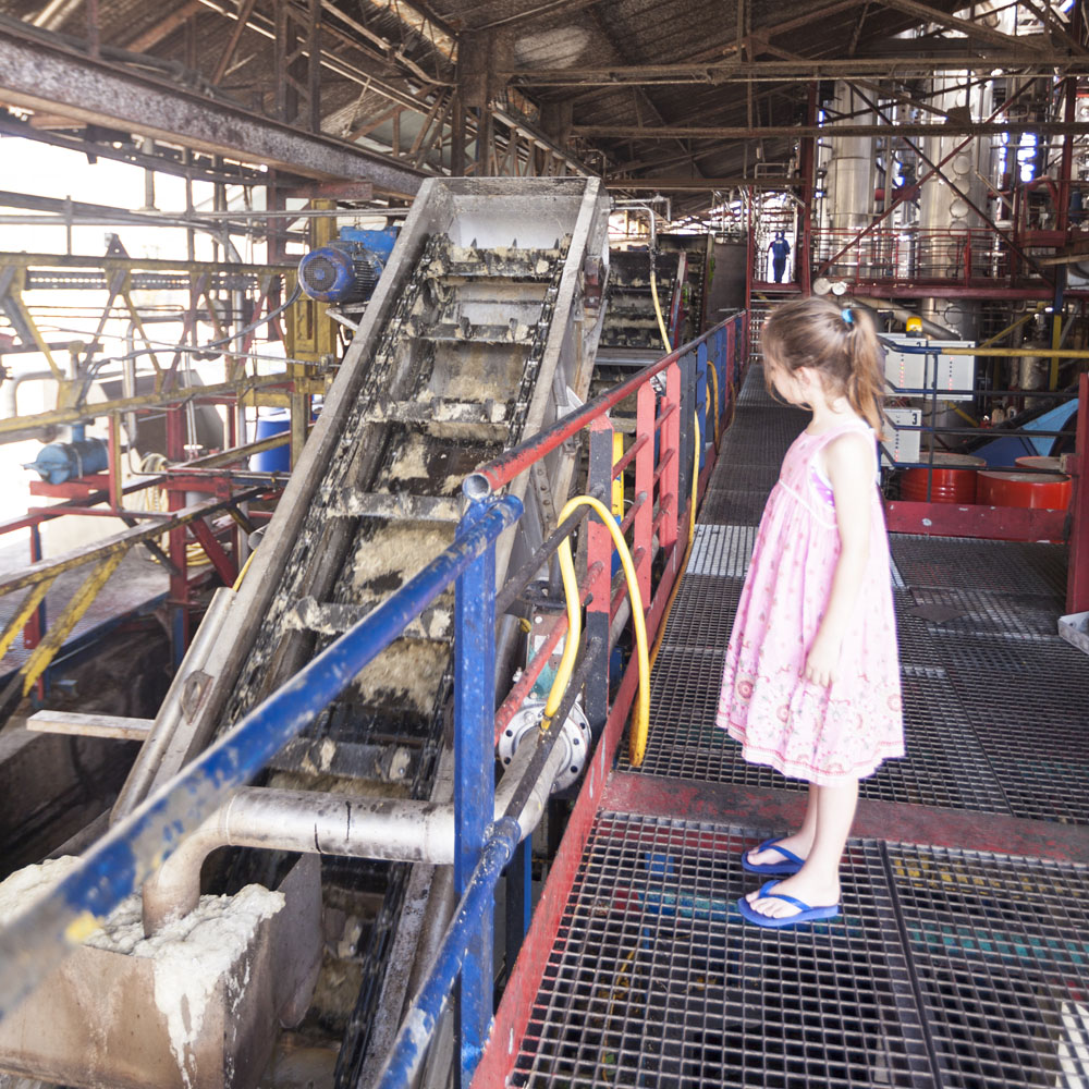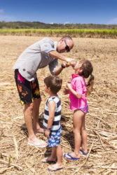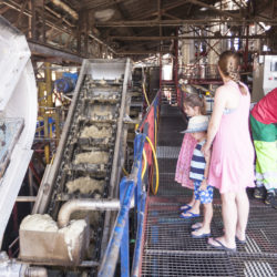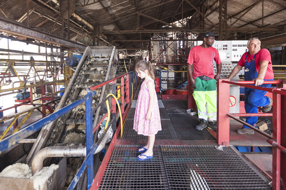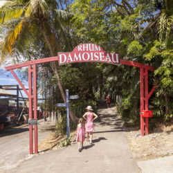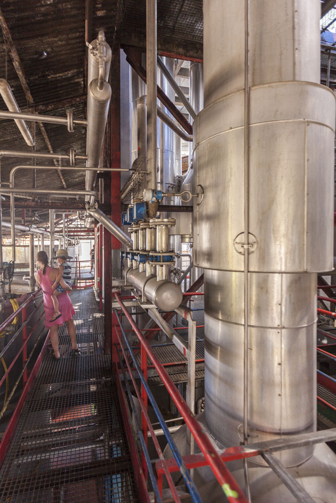 On our way back south to Sainte-Anne we stopped at one of Guadeloupe’s many rum distilleries – Distillerie Damoiseau – but before arriving were lucky enough to stumble upon a crew harvesting sugar cane. The cane fields are ubiquitous in Guadeloupe and dot the countryside between every town. One of the farmers was nice enough to machete a cane for me so the kids could sample the nectar and chew on the sweet stalk. Quite a cool experience for the kids…