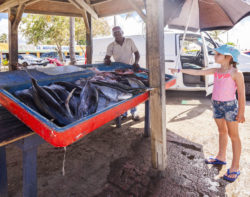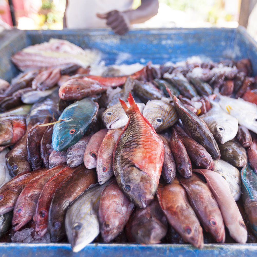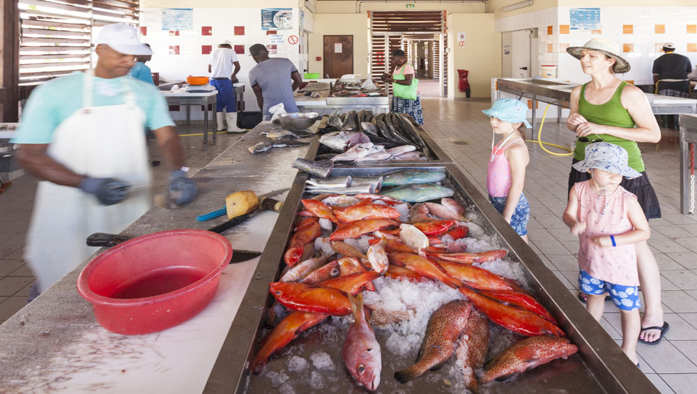 The fish markets in Sainte-Francois were a fun adventure on our way to Anse à la Gourde one morning. Each boat seemed to have its own stall on the wharf, where the fisherman would scale and clean their day’s catch. We saw everything from parrot fish through tuna, dorado and even a human-sized swordfish up for sale. I do want to just note two memorable foreign language experiences on day four… First was Lisa trying to get fancy with her French to order an iced latte at of one of cafes in Sainte-Francois: she ended up with a cold glass of milk. The second: much to my chagrin, “poulet roti” is actually not a Fijian-style roti filled with chicken, but is in fact a whole rotisserie chicken bagged up to take home. I thought I was getting a couple of chicken rotis for lunch, but instead ended up going home to make chicken sandwiches with two whole chickens!
