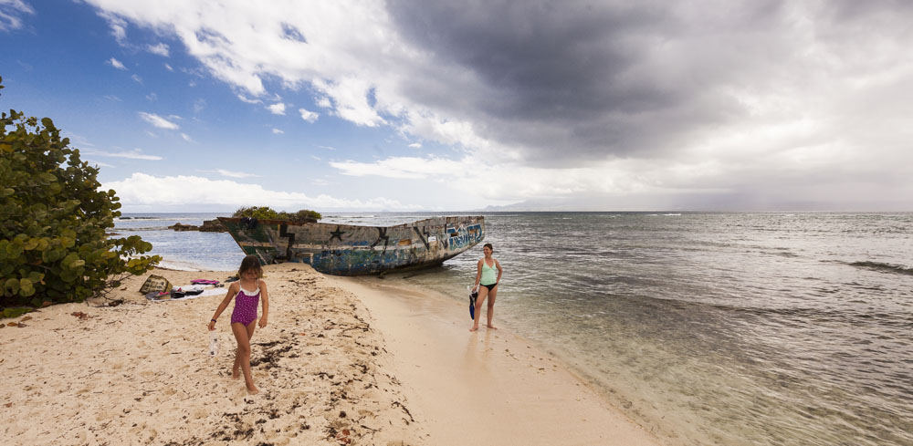 Another minor foreign language mishap had us waiting around the house one morning for a local fisherman who we thought we’d lined up to take us out to the remote islands of Petit Terre. Don’t get me wrong, with a comfortable deck and pool there were worse places to spend the morning than the house where we stayed in Sainte-Francois… After lunch we eventually gave up on Monsieur Genaste and headed back to our favorite beach on Grande-Terre: Plage Grande Anse des Salines. It was even better on our second visit, with slightly cooler temperatures and much calmer swells, the kids had a ball snorkeling in the protected waters behind the barrier reef and collecting trinkets from the ocean floor. Lilia had seriously perfected her duck dives by the end of the day.