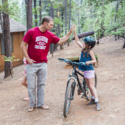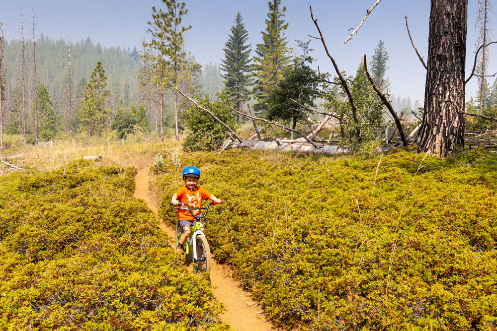 With all the wildfires raging across California it was pretty smokey each morning, so while we were waiting for the smoke to clear one day we explored a section of the Arnold Rim Trail on bikes with the kids. A little whining on the way up in the heat, but there were lots of smiles on the way down.
