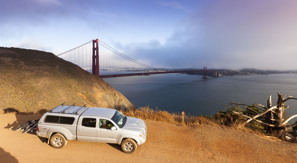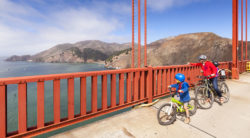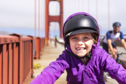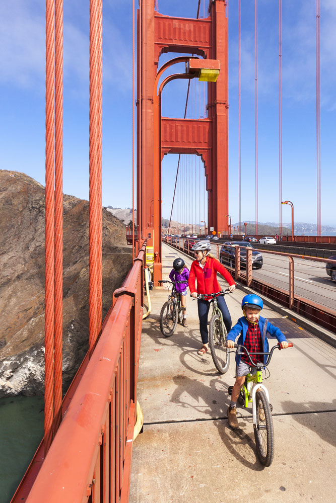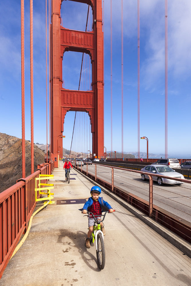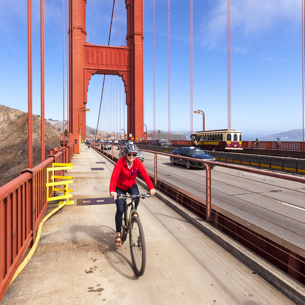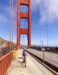 Riding across the Golden Gate Bridge