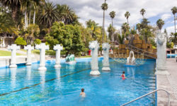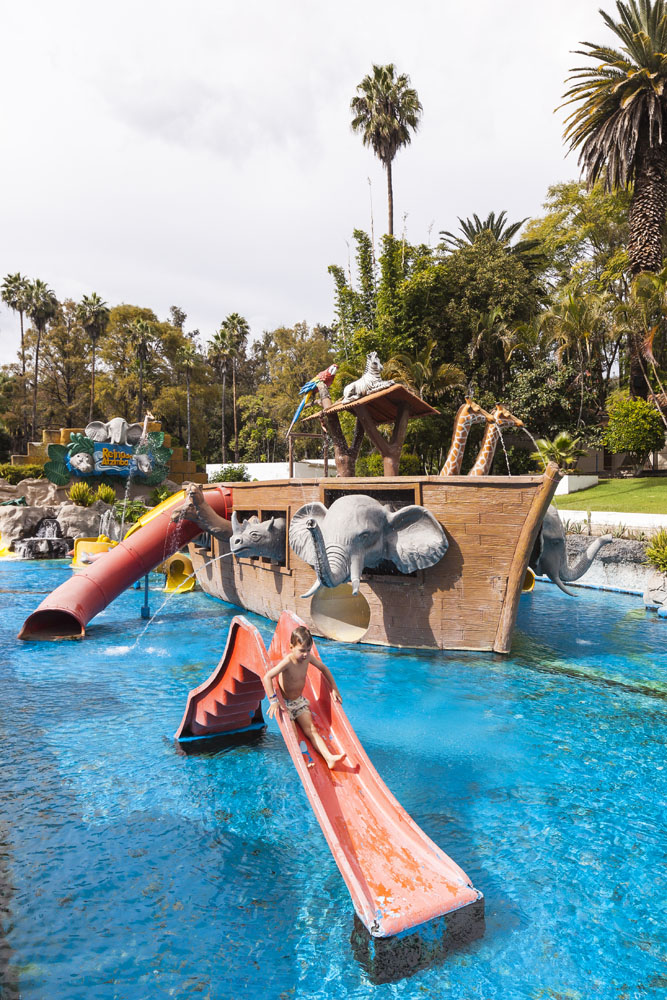 There are a number of large lakes and collections of thermal springs in the countryside surrounding Morelia, a few of them have large waterparks. On our second day in Mexico we headed out to Reino de Atzimba in the small town of Zinapecuaro de Figueroa, roughly 45 minutes outside of Morelia. Yes, it was the middle of winter when we were there, but afternoons in the sun were reasonably warm and my kids would jump off an iceberg if it meant being able to swim. Atzimba was open for business when we arrived, but what we didn’t realize until entering was that the waterslides and wave pool close down for winter. Better left for a summer visit… Stacy – our fifth family member for the trip – and Lisa watched the kids swim while I ventured out into the town to locate a few beers and some food. Atzimba is in need of some TLC (maybe they do it before the summer season…), with a solid layer of algae on the sides of the pools and rusty, exposed metal all over the place. But that didn’t stop the kids having a blast for an hour or two in the pools. We made the most of it with a few Coronas.