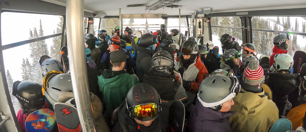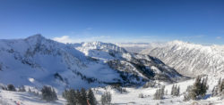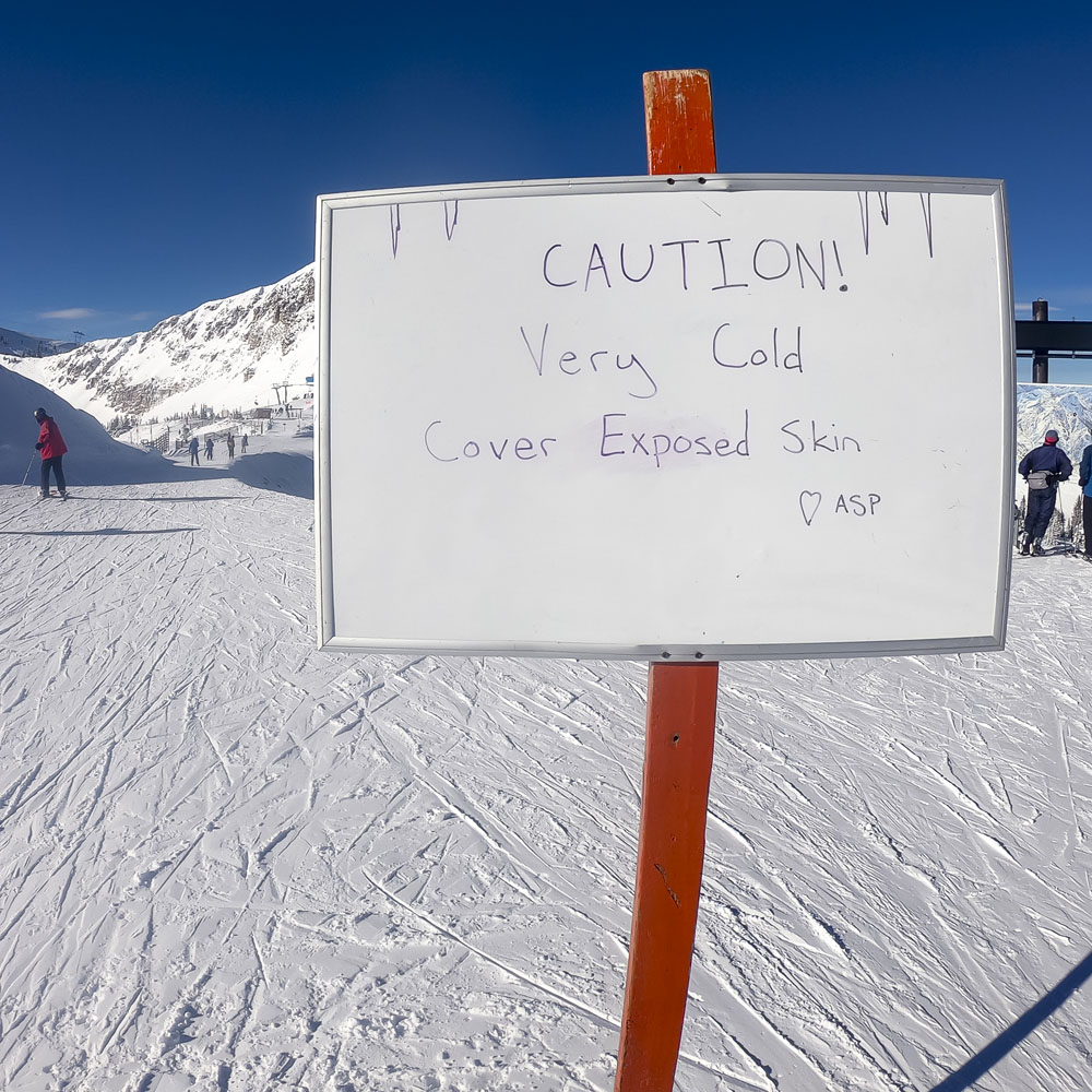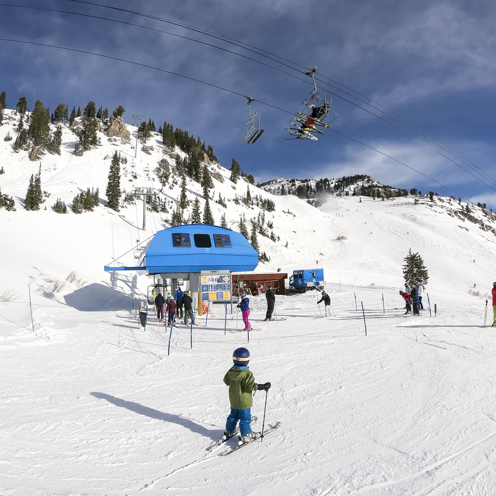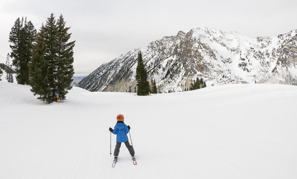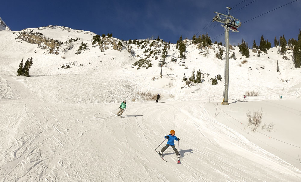 The kids didn’t have another day in them, so I was lucky to get a solo day to explore Alta on our last day in Salt Lake (thanks Lisa!). Alta’s an amazing resort, one that should be on every serious skier’s bucket list. A huge resort by acreage, but the variety of terrain is amazing: everything from steep chutes, tree skiing, runs full of natural features like boulders and creeks, as well as some of the widest (and fastest) top-to-bottom groomers I’ve ever skied. Alta’s slogan is “Best Skiing in Utah” and I have a feeling that it could be true. Even though it’s only a stone’s throw from Snowbird – I actually skied a couple of runs at Snowbird from the back side of Alta – Alta’s location deeper in Little Cottonwood Canyon means that it gets more snow than its neighbor, stays colder and the snow it does receive seems to be a little drier. Whoever coined the term “blower pow” must have been skiing Alta on a powder day, when I was there I could look behind me and see plumes of fluffy white stuff in my wake. Fun stuff! It was clear but again bitterly cold for my day at Alta, maximum temperature was 13F/-11C, I actually got a headache on one run from the cold air entering my helmet via the two minuscule gaps between the top of my goggles and my helmet!