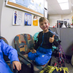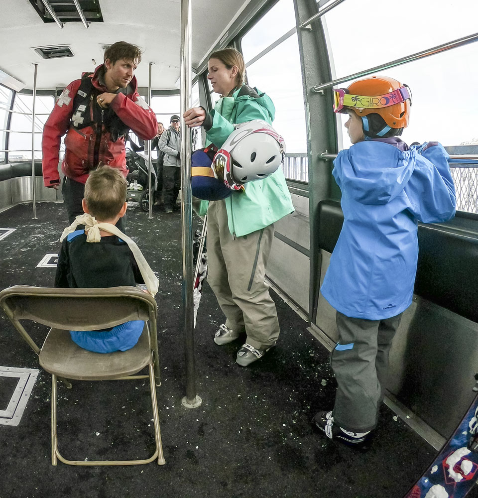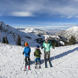 Cheryl and Chris were delayed one day so the Valtenbergs squad headed to Snowbird on our first day. Snowbird’s a gnarly mountain looking up from the base, full of cliffs, chutes and steep pitches. A huge tram like the one at Jackson Hole takes skiers and boarders to the peak. The kids were quite enamored with the tram, it was pretty huge, the capacity of the single dangling tram car was 130 people! Snowbird really is a resort for advanced skiers and boarders, but the Mineral Basin area in the rear of the resort has a good collection of runs that the kids could tackle. Unfortunately on our second run Max got a little ahead of himself on a short but steep pitch and I had to ski across the run to stop him getting out of control. In the process of tackling him to the ground I must have either fallen on top of his right arm or he must have tweaked it as he fell, but either way he was in an excruciating amount of pain following the crash. Lisa and I both saw our ski week flash before our eyes… He skied down the remainder of the run with me, and we eventually got him to the ski patrol station at the top of the Snowbird tram. The ski patroller who helped out – Nat – was great with him, poor Max almost fainted from pain as two ski patrollers gently bent his arm into a splint for the ride back down the tram. Fortunately for us Snowbird has a very well provisioned medical clinic right at the base of the tram (I have a feeling the resort sees its fair share of injuries!) so Max was getting seen to within a few minutes of disembarking the tram. The doctors at the Snowbird clinic all have some form of orthopedic training, such a godsend to have them available on the mountain. Max had a few initial x-rays taken, and without any sign of a fracture the docs were leaning toward a diagnosis of Nursemaid’s Elbow but they couldn’t be certain without additional x-rays taken at a different angle. In the process of having his third set of x-rays taken the tech (intentionally) rotated Max’s forearm in a way that popped the radius bone back into place after screaming like I’ve never heard him scream before, writhing in pain and almost fainting as a result of the pain. It was amazing: as soon as his joint was popped back in he was pretty much back to normal, and following the drama he had no bruising, no swelling and no additional pain. He was back out in the snow within minutes jumping around like nothing ever happened. If you’re a parent and you’re reading this check out YouTube for clips of Nursemaid’s Elbow because I know quite a few other young kids who have had the same thing happen to them.