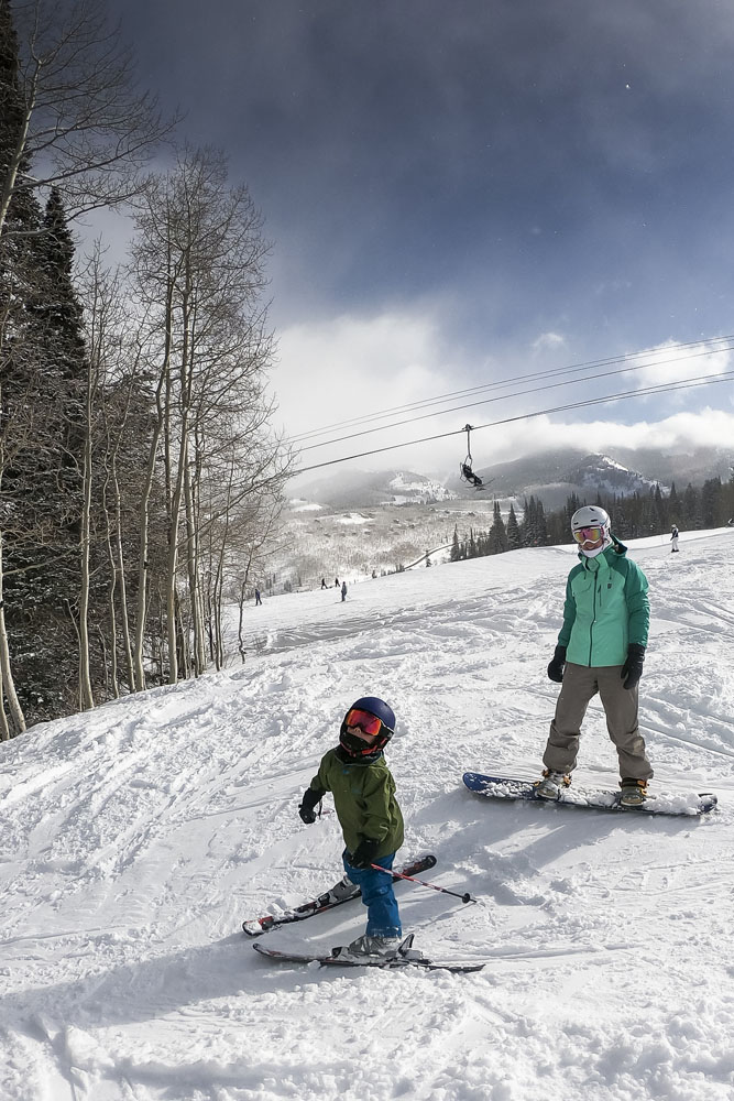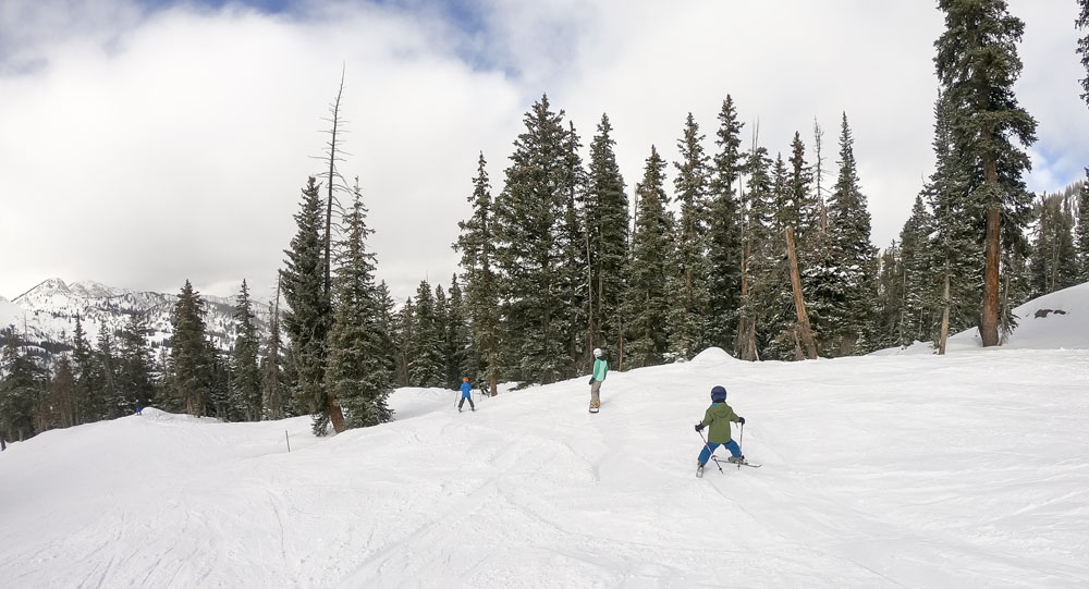 After a traditional Christmas dinner of ham, mashed potatoes and salad as well as (a few too many) Christmas libations we were greeted with a solid dumping of fresh, dry, Wasatch powder on the day after Christmas. After an exquisite breakfast of homemade quiche from Cheryl we hit Solitude again, another of the kids’ favorites with all the cruisey blue runs and fun trees to explore.