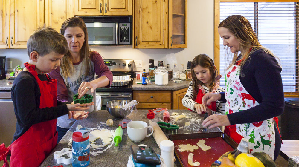 On Christmas Eve the kids made Christmas cookies with Cheryl and Lisa, tackling the dough after breakfast so it had time to set in the fridge while we were on the slopes. We skied Brighton on our second day, a fantastic resort for the kids with equally good terrain for the adults. Operations were a bit of a zoo – the parking lot was a mess and it took us half an hour to get Cheryl a lift ticket – and the fact that it’s at the end of the road in Big Cottonwood Canyon means that traffic often gets backed up for a couple of miles as it works its way into the resort. But that didn’t stop us from having a ripper day, kids (Max especially) loved all the tree skiing.