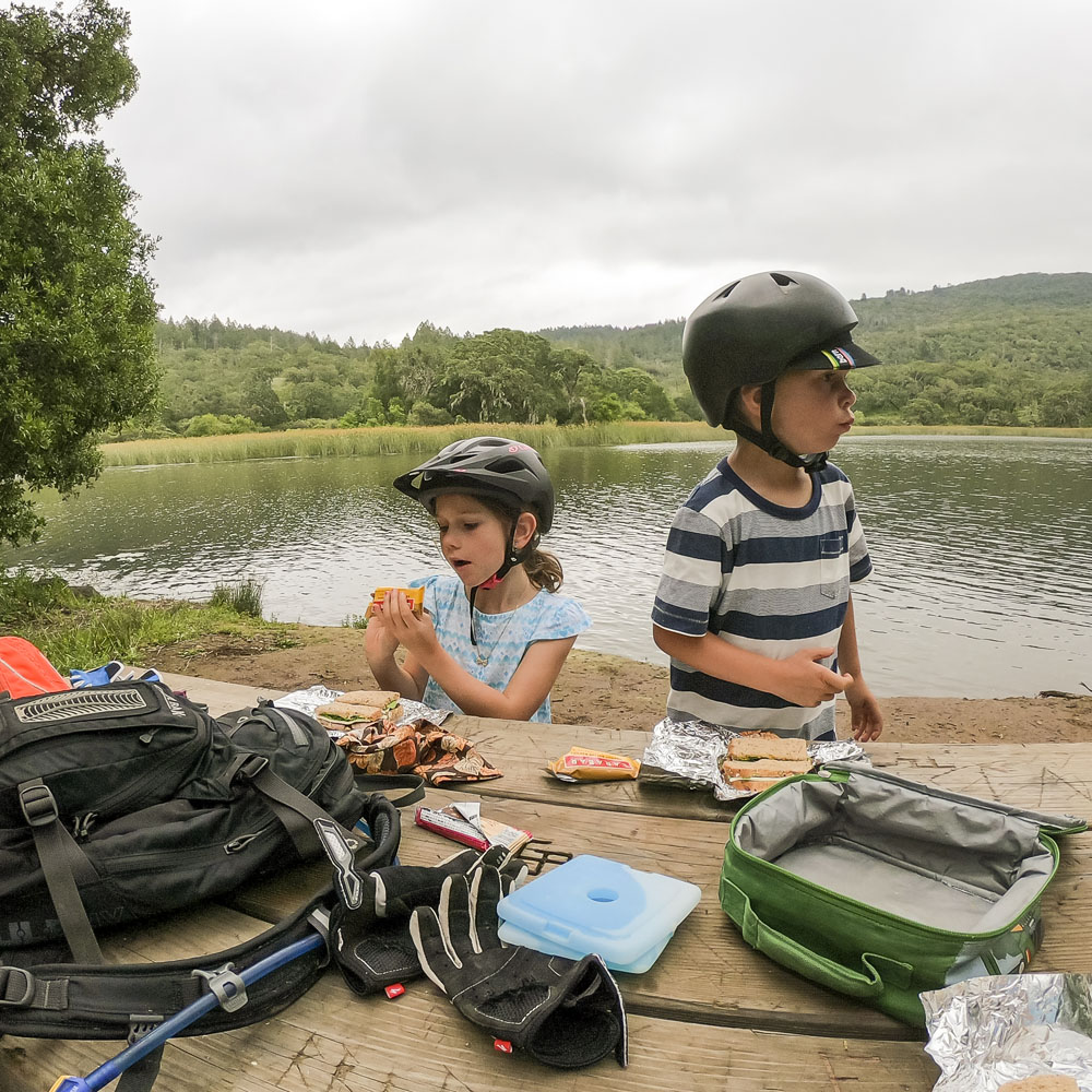 A little muddy for our first family Annadel ride today, but both kids made it all the way up to Lake Ilsanjo and loved the downhill back to the truck. Two very choofed parents, this summer is going to be fun!