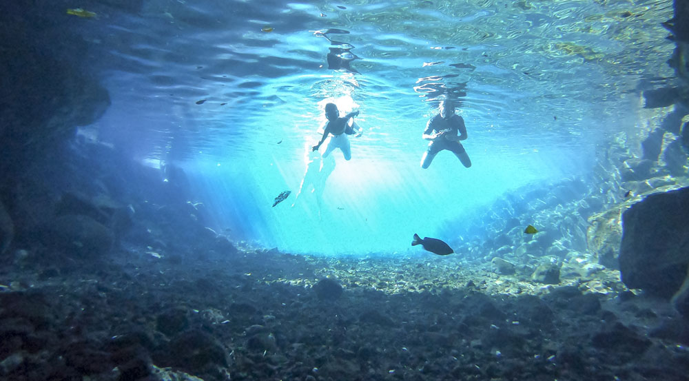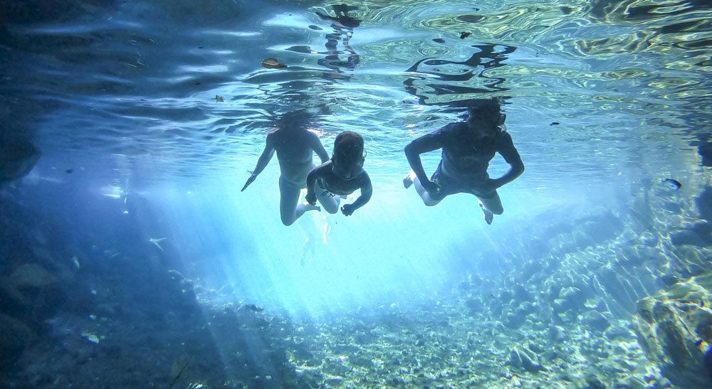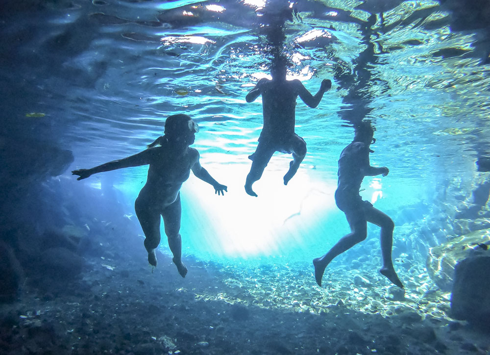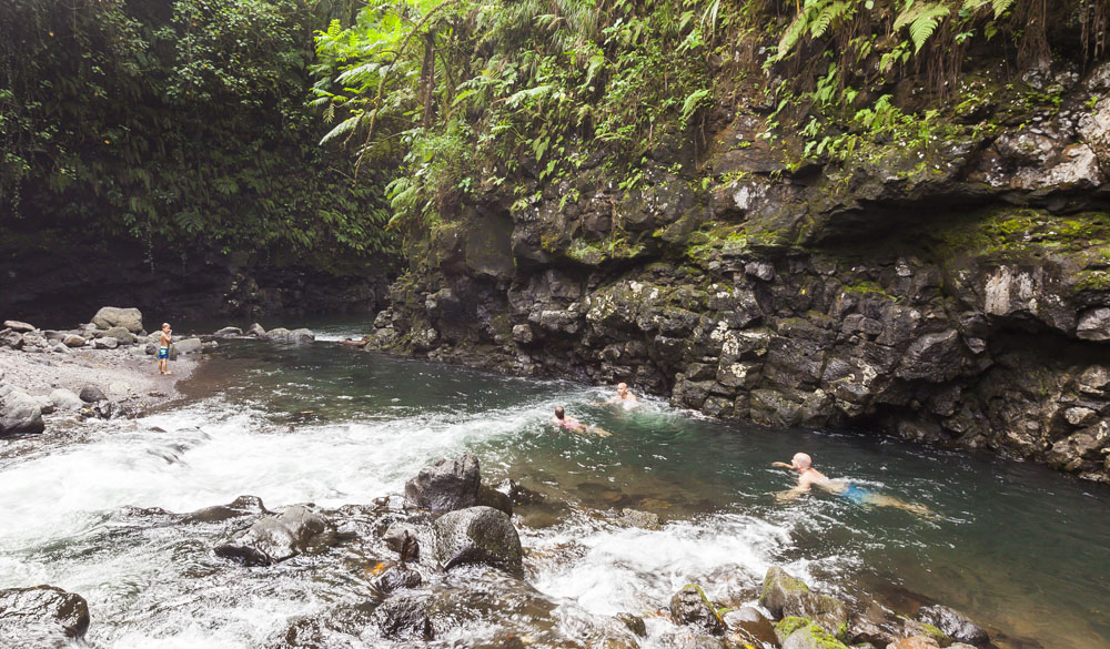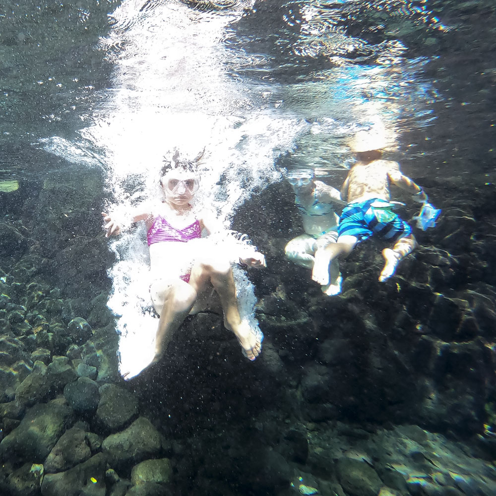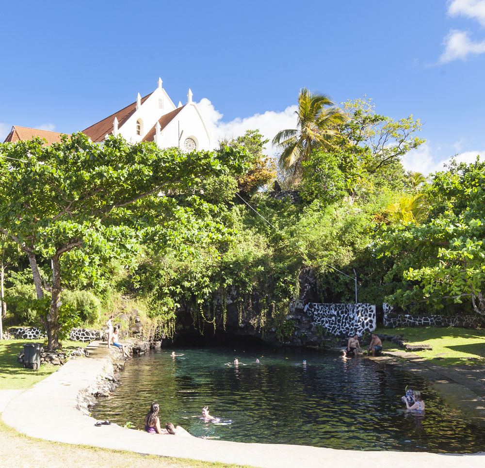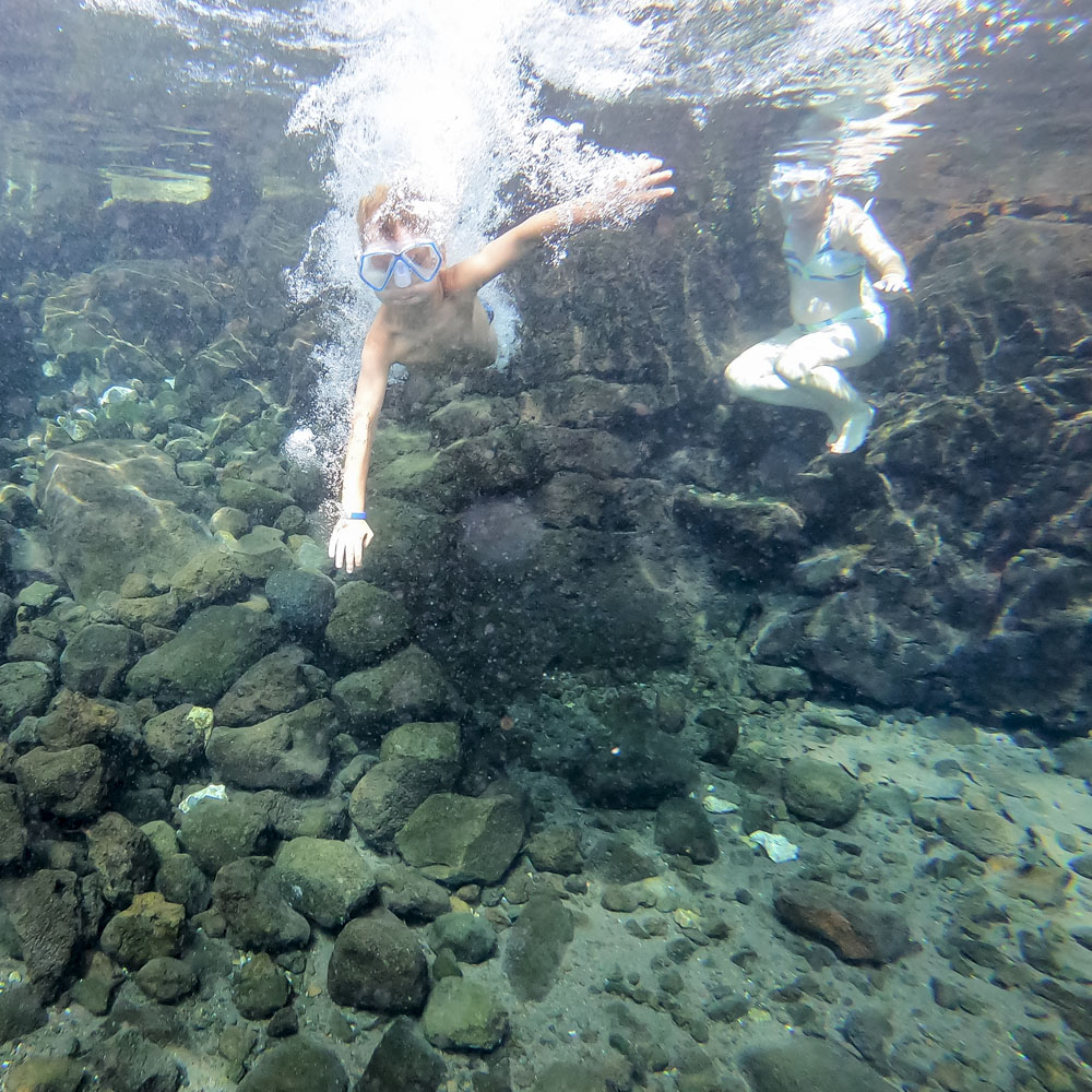 In the kids’ opinions, Hallsy saved the best adventures for last: following our morning in Apia we spent our last full day on an adventurous excursion up into the mountains to Sauniatu Falls and then to the cave pool below Piula Theological College. Sauniatu is definitely a locals-only spot, getting there entailed six kilometers/four miles up a rough dirt road that wasn’t even on my phone’s maps app. We had the place to ourselves for an hour or so until some of the local village boys came to join us for a swim. A majestically beautiful spot, Lilia and Max were in heaven, one of the most beautiful waterfall settings I’ve ever visited, without a doubt… The local boys were diving and flipping off the cliffs surrounding the falls, even climbing behind the cascades and jumping through the torrent into the plunge pool. Max was in awe. The cave pool at Piula was pretty awesome too, it’s fed by a freshwater aquifer and the clarity of the water was astonishing (albeit a little chilly!).