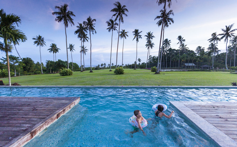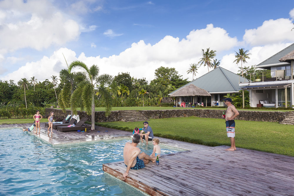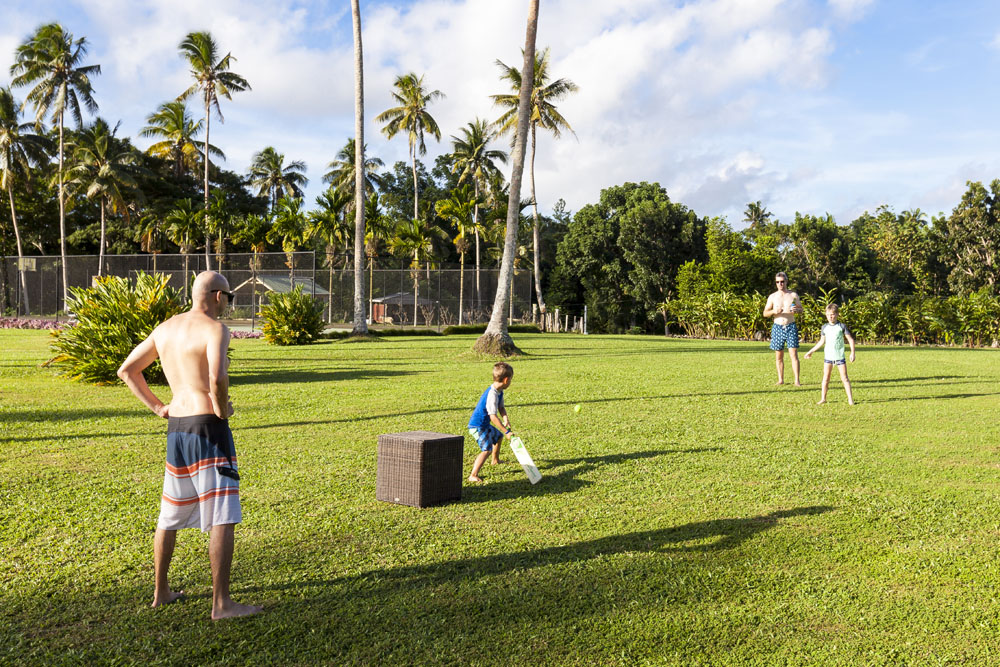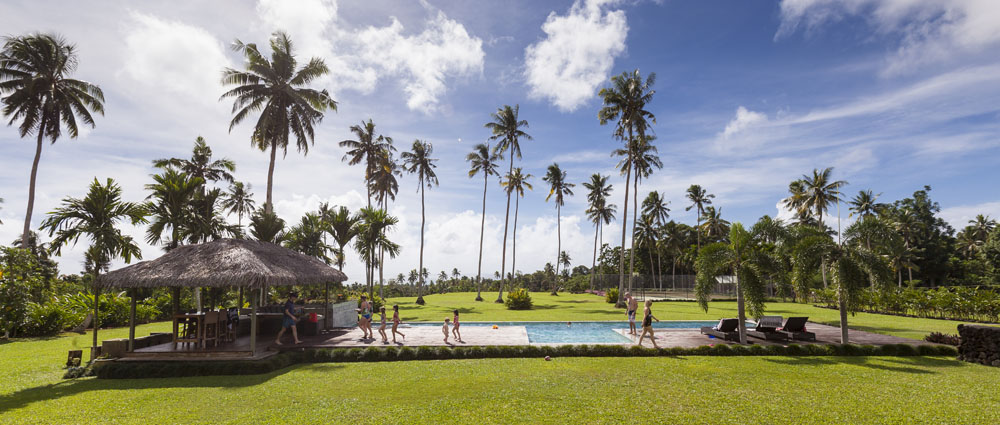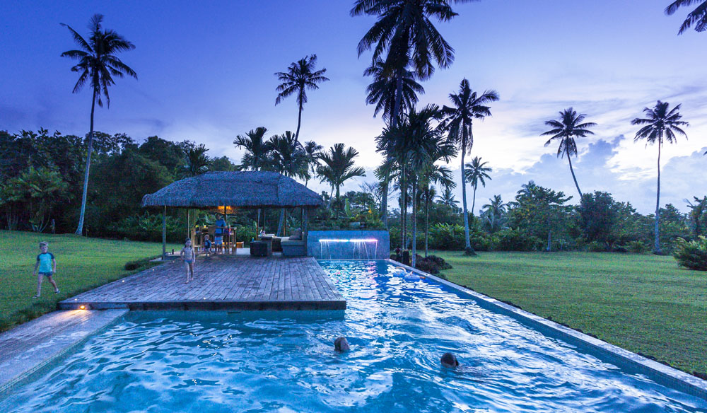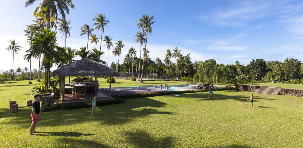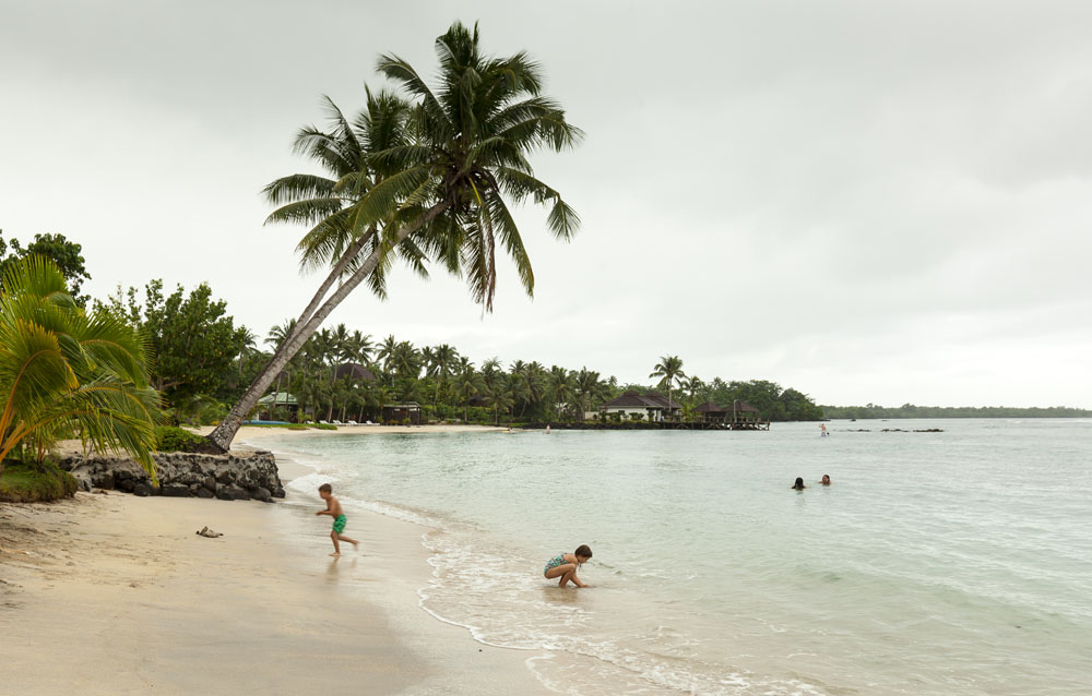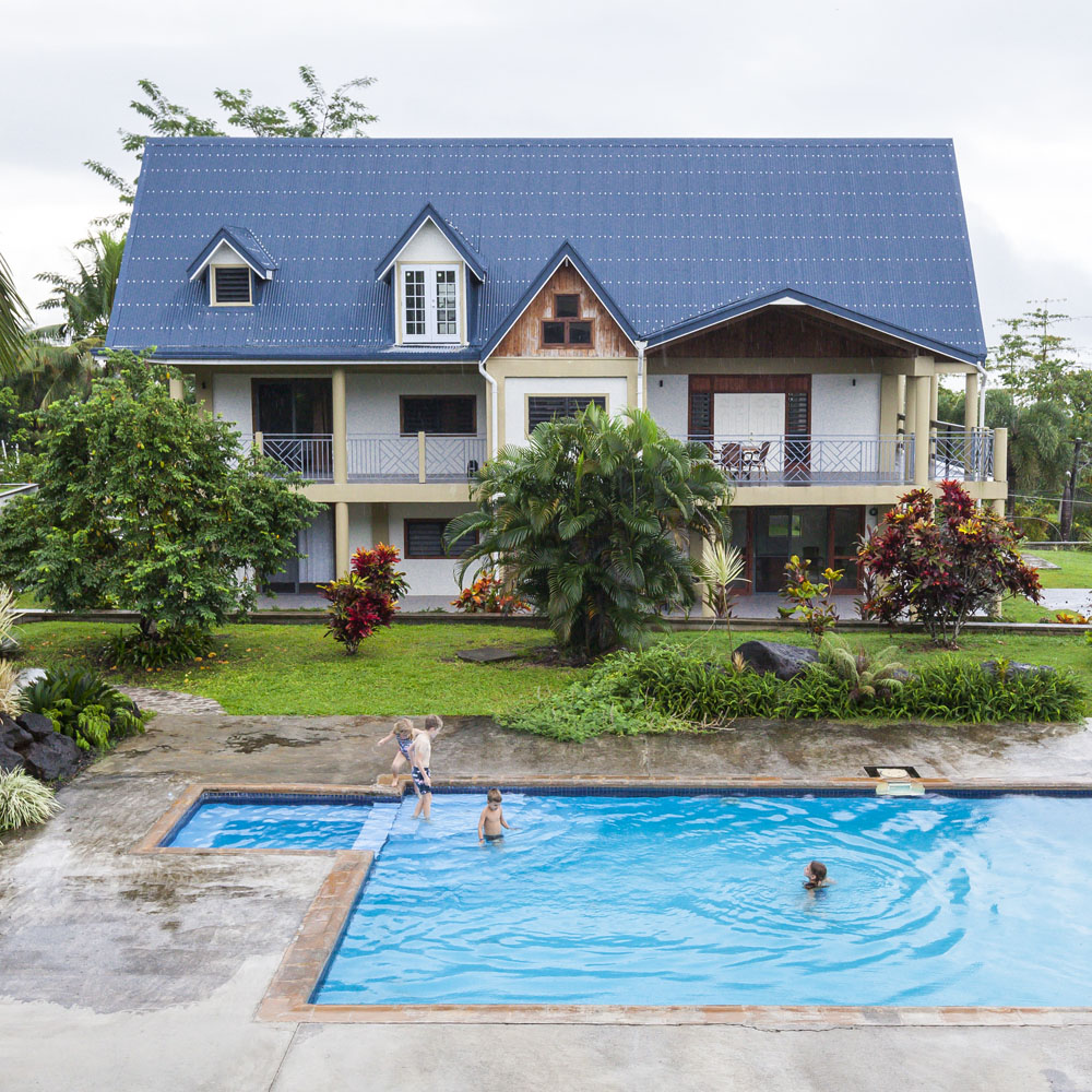 The Littles and Valtenbergs stayed at Ifiele’ele Plantation on the northwest coast of Upolu, a beautiful spot in the jungle a few kilometers inland from the ocean. The plantation is run by a New Zealander who married an Aussie woman and moved to Samoa 10 years ago, they run a self-catering villa on the plantation as well as producing pretty much every kind of organic tropical fruit one can imagine. It was an ideal spot for the kids to run around and the three families to gather, the pool providing endless hours of enjoyment for the kids and the open grass seeing a few games of backyard cricket during our stay. The plantation staff would harvest fresh coconuts for us to drink and provided us with a dizzying array of local fruit, even cooking us up local dishes to sample one afternoon. The sasalapa was something I’d never seen before, quite a lot of work to deseed but great to freeze for our morning smoothies. The kids were quite enamored with the staff climbing the coconut trees to pull niu coconuts for us!