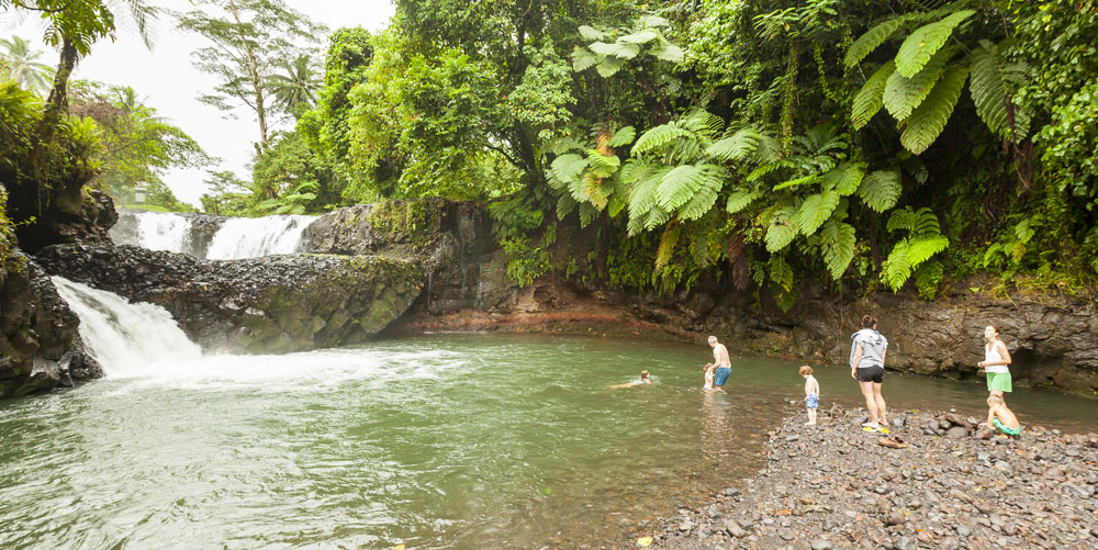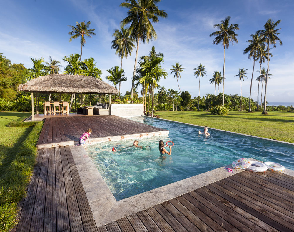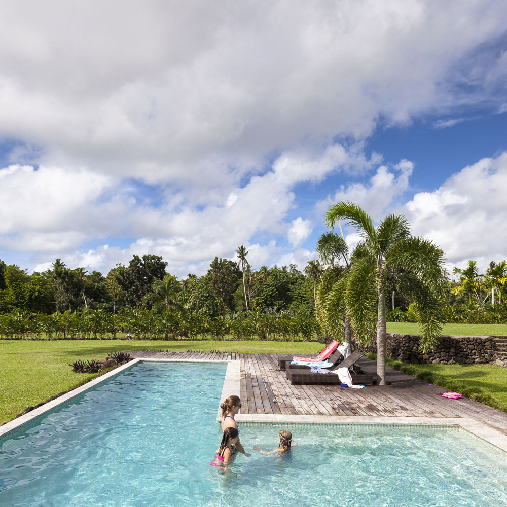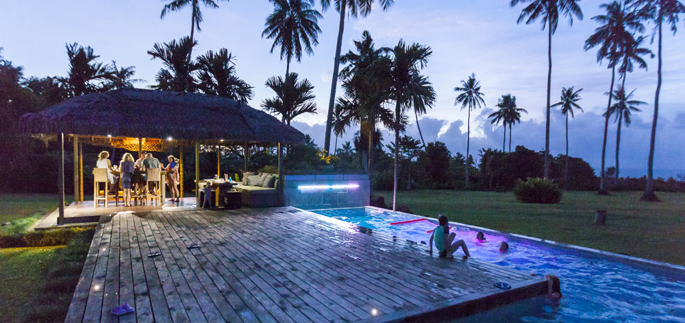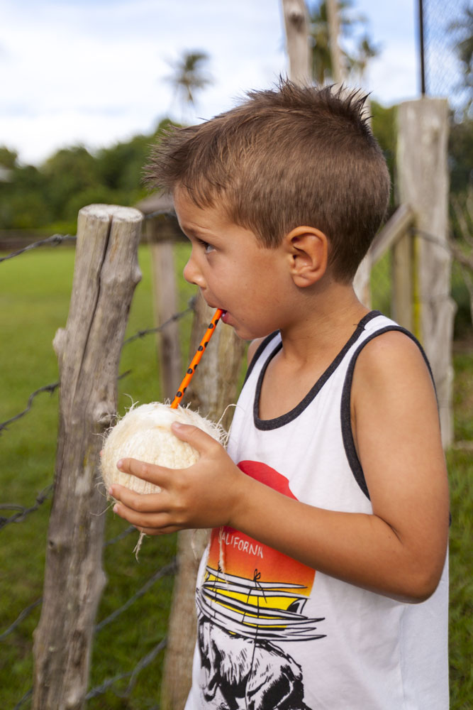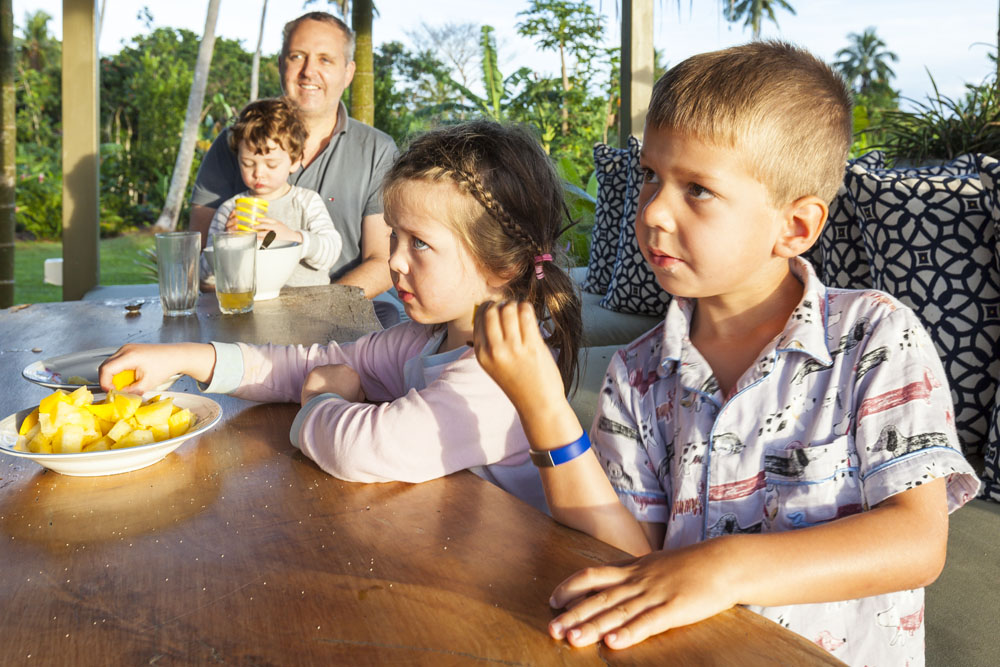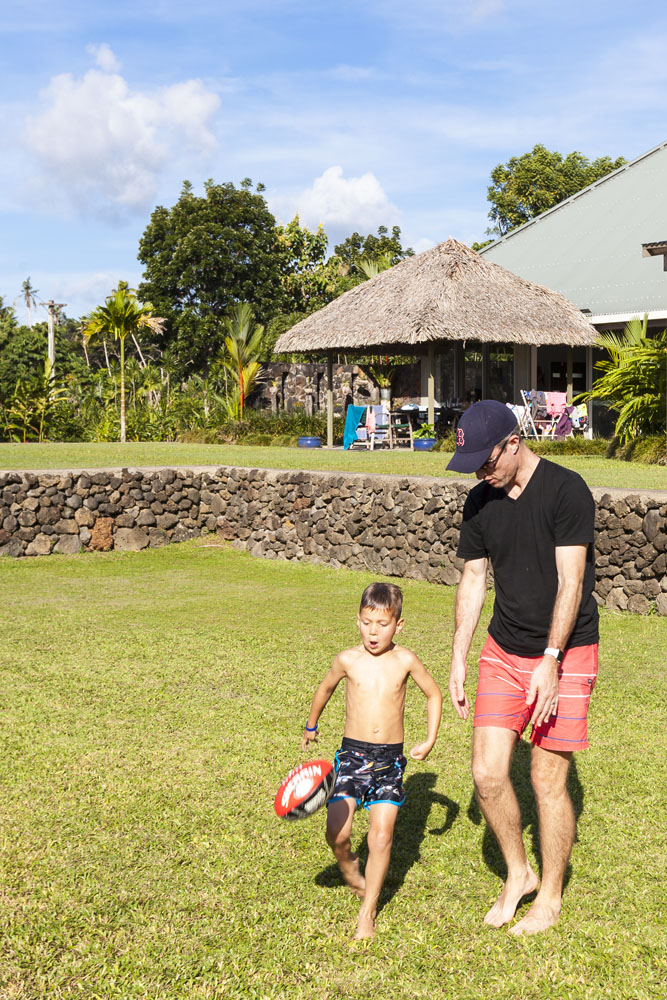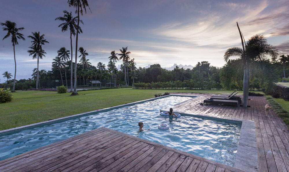 The Littles and Valtenbergs stayed at Ifiele’ele Plantation on the northwest coast of Upolu, a beautiful spot in the jungle a few kilometers inland from the ocean. The plantation is run by a New Zealander who married an Aussie woman and moved to Samoa 10 years ago, they run a self-catering villa on the plantation as well as producing pretty much every kind of organic tropical fruit one can imagine. It was an ideal spot for the kids to run around and the three families to gather, the pool providing endless hours of enjoyment for the kids and the open grass seeing a few games of backyard cricket during our stay. The plantation staff would harvest fresh coconuts for us to drink and provided us with a dizzying array of local fruit, even cooking us up local dishes to sample one afternoon. The sasalapa was something I’d never seen before, quite a lot of work to deseed but great to freeze for our morning smoothies. The kids were quite enamored with the staff climbing the coconut trees to pull niu coconuts for us!