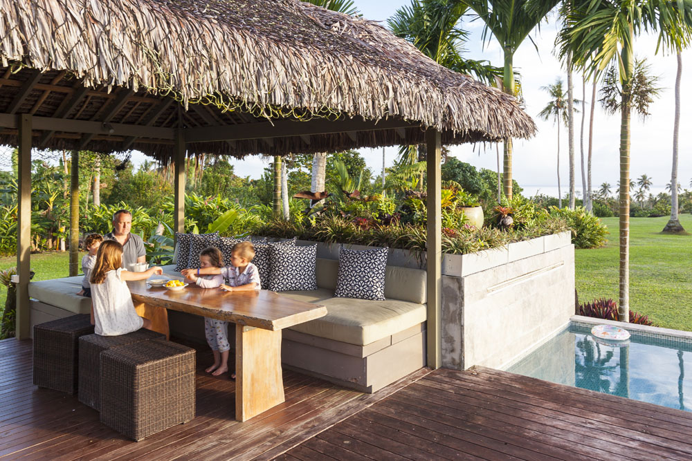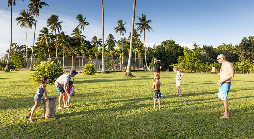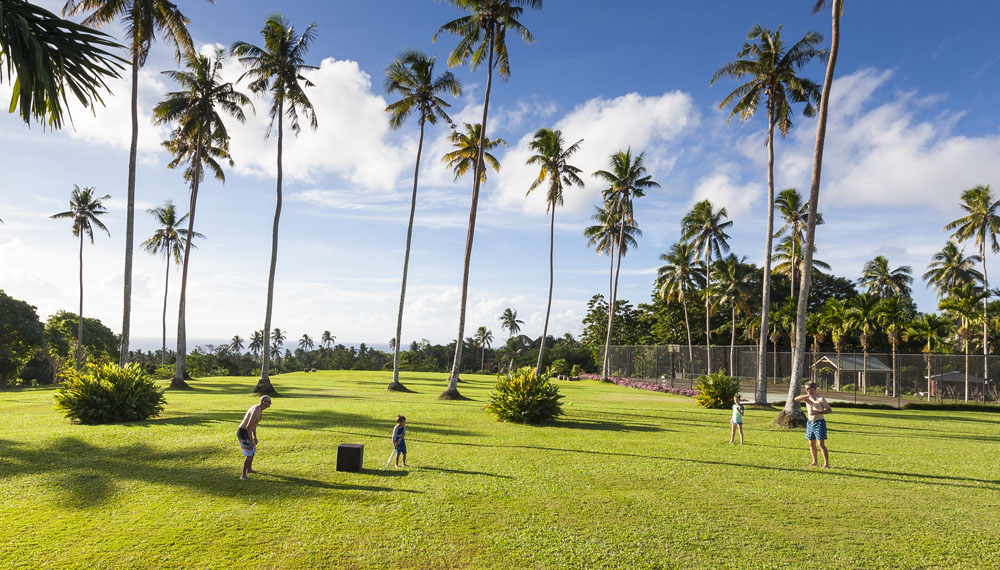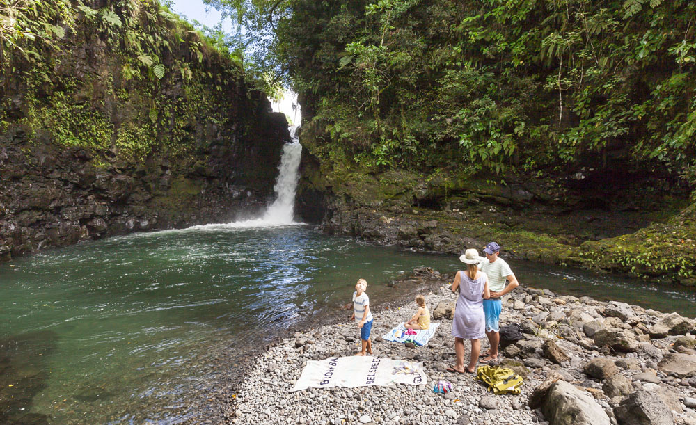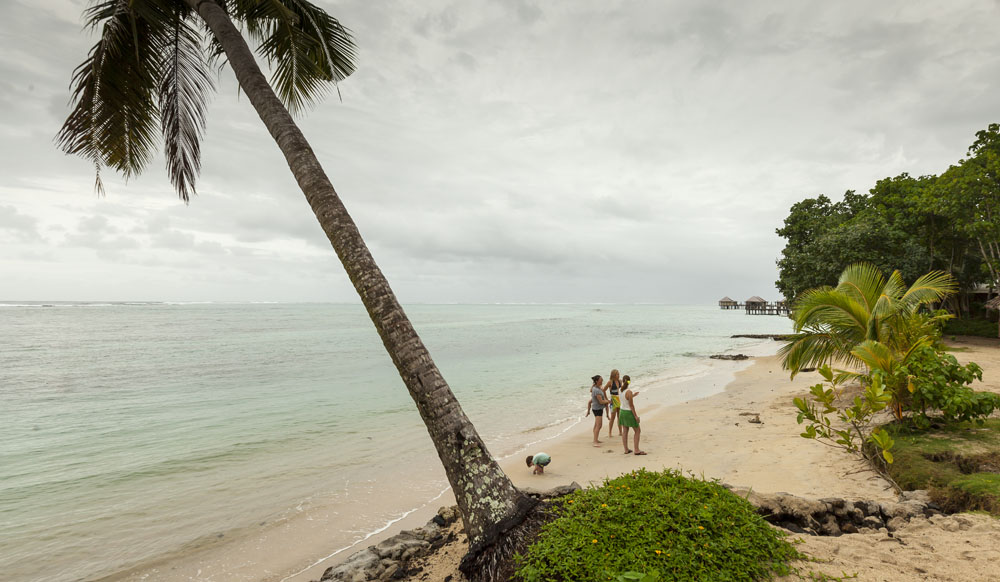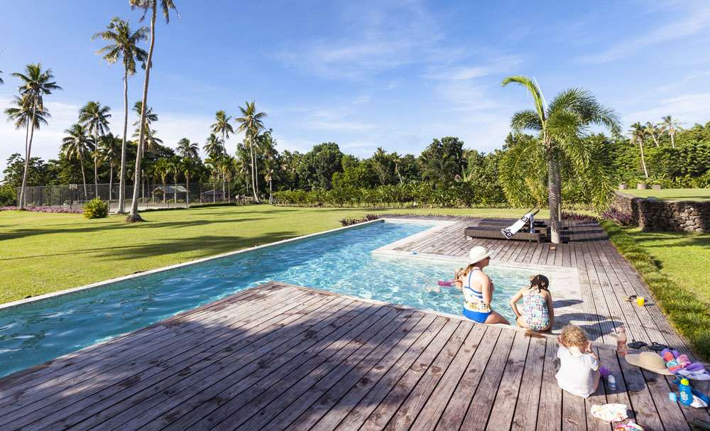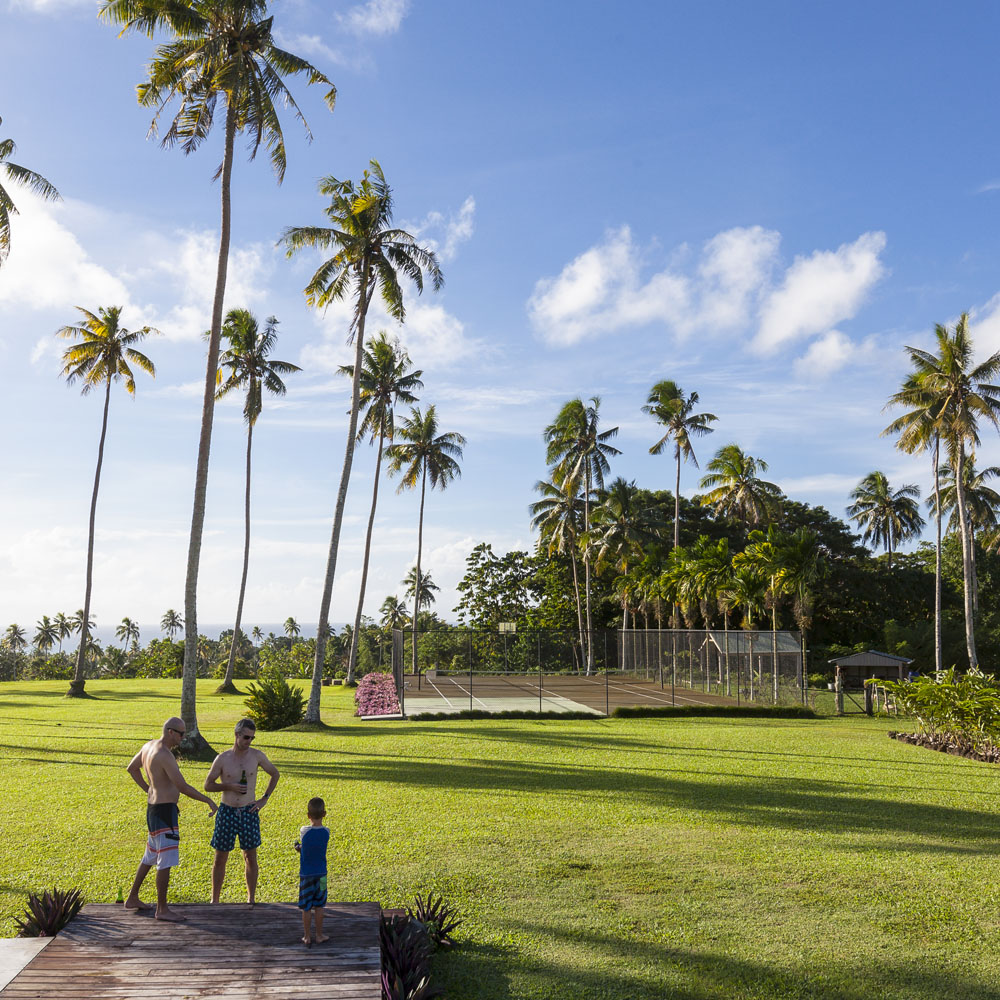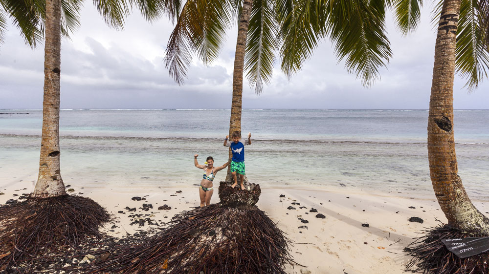 The Littles and Valtenbergs stayed at Ifiele’ele Plantation on the northwest coast of Upolu, a beautiful spot in the jungle a few kilometers inland from the ocean. The plantation is run by a New Zealander who married an Aussie woman and moved to Samoa 10 years ago, they run a self-catering villa on the plantation as well as producing pretty much every kind of organic tropical fruit one can imagine. It was an ideal spot for the kids to run around and the three families to gather, the pool providing endless hours of enjoyment for the kids and the open grass seeing a few games of backyard cricket during our stay. The plantation staff would harvest fresh coconuts for us to drink and provided us with a dizzying array of local fruit, even cooking us up local dishes to sample one afternoon. The sasalapa was something I’d never seen before, quite a lot of work to deseed but great to freeze for our morning smoothies. The kids were quite enamored with the staff climbing the coconut trees to pull niu coconuts for us!