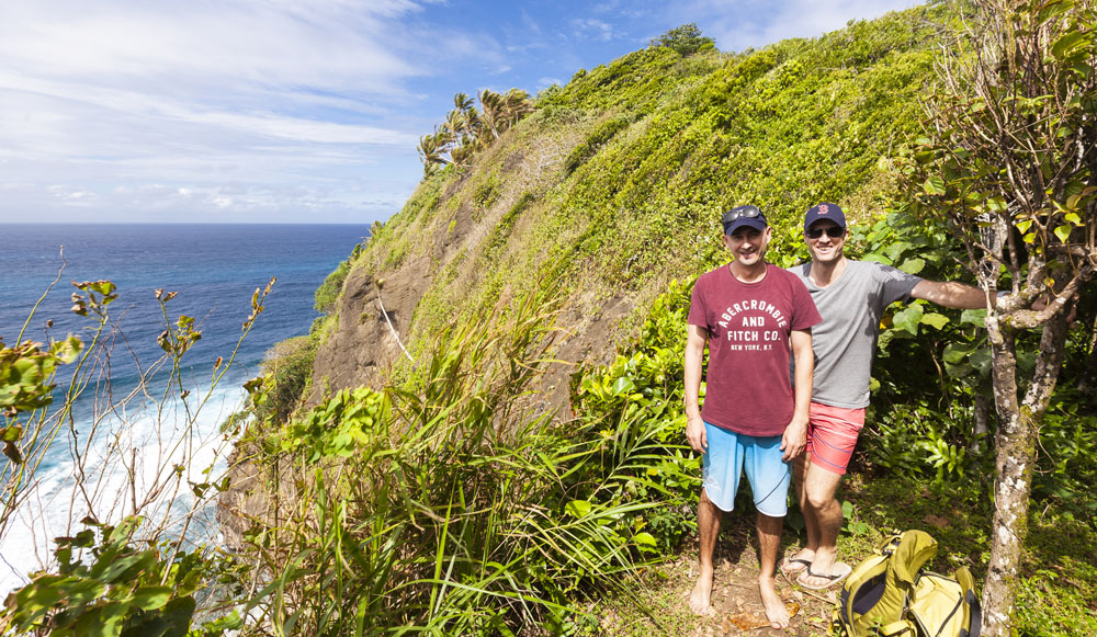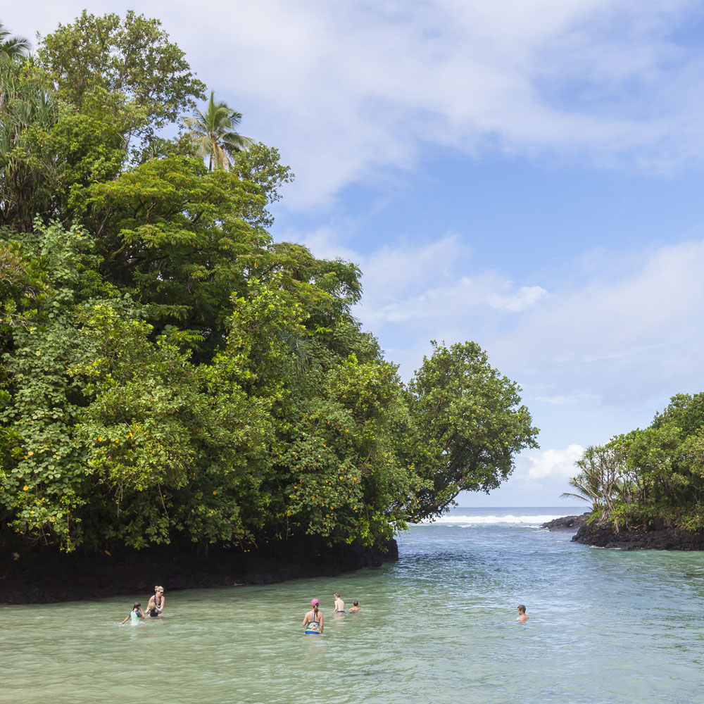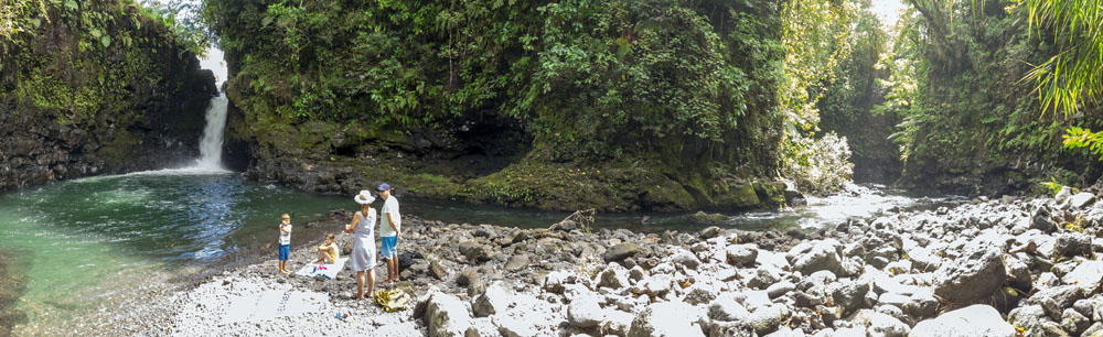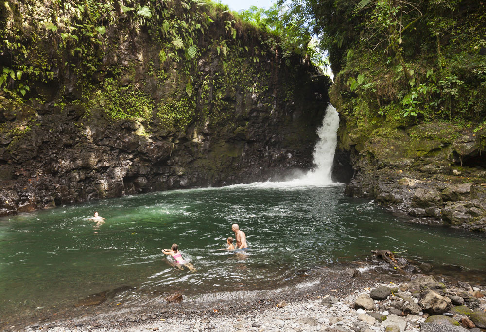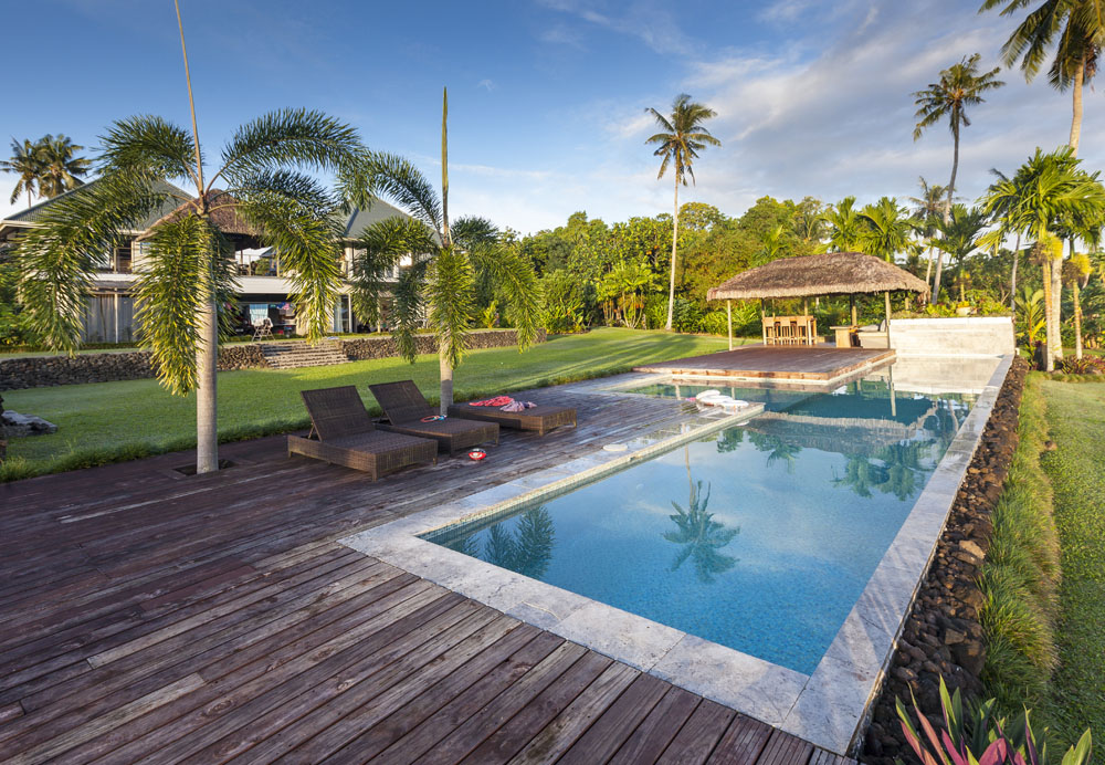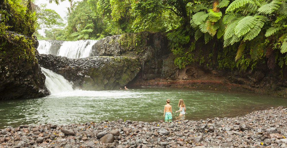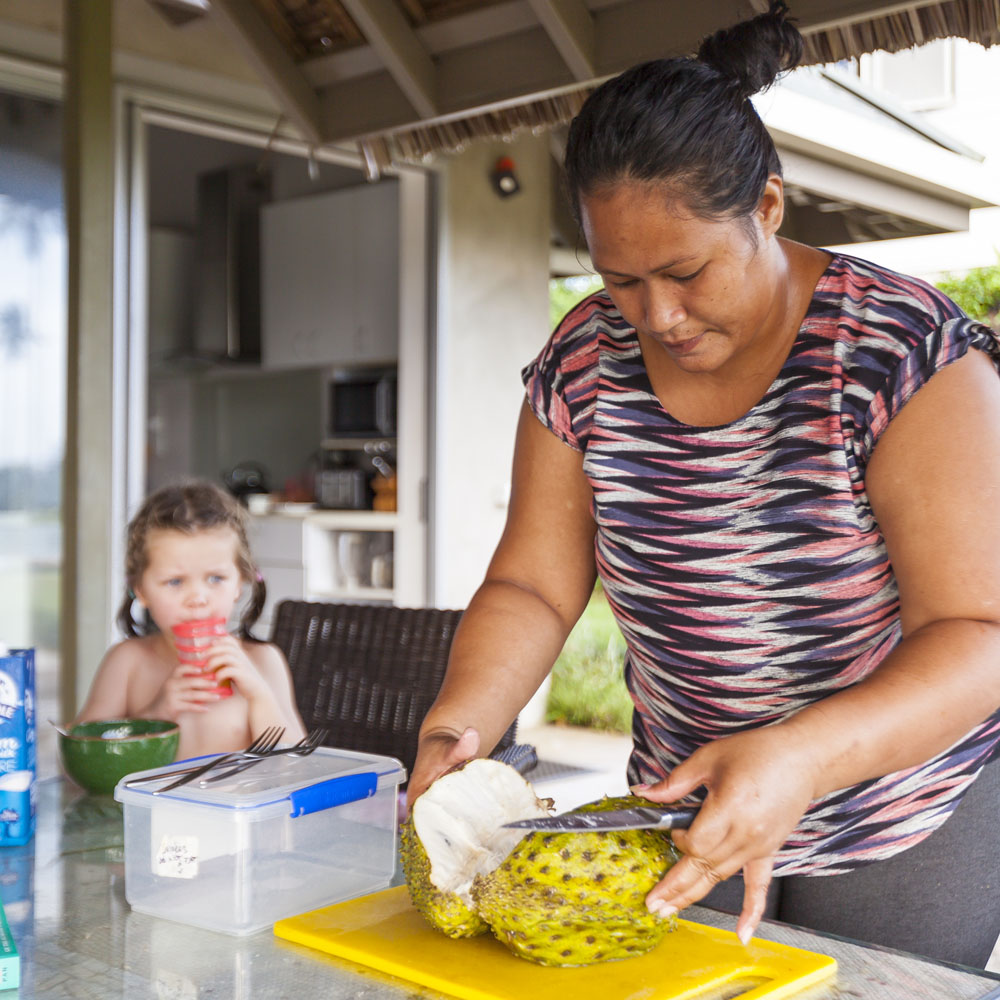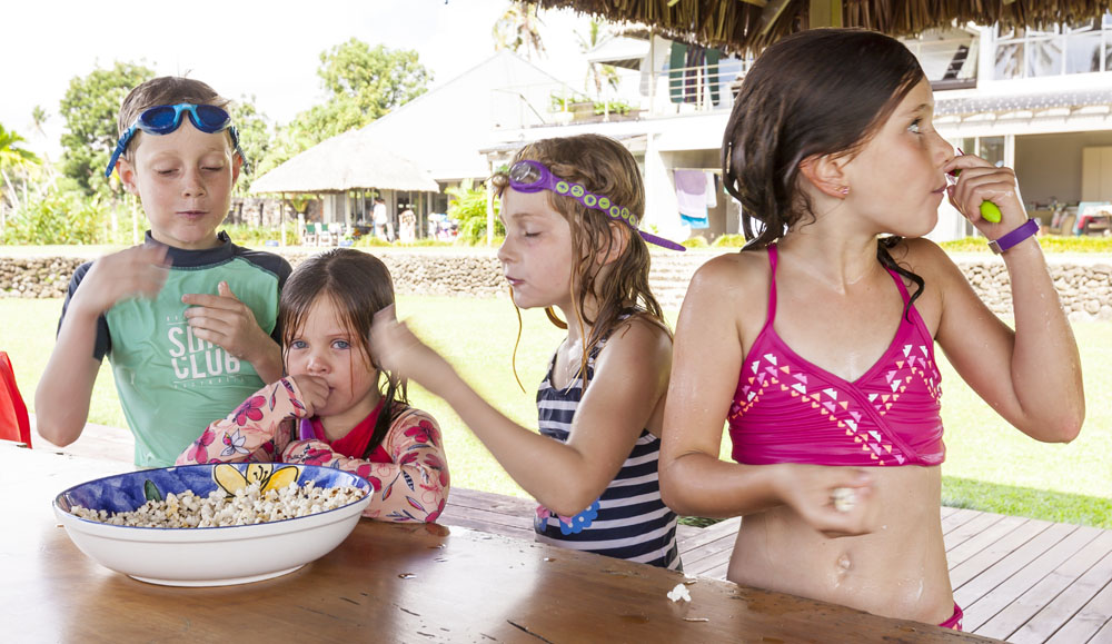 The Littles and Valtenbergs stayed at Ifiele’ele Plantation on the northwest coast of Upolu, a beautiful spot in the jungle a few kilometers inland from the ocean. The plantation is run by a New Zealander who married an Aussie woman and moved to Samoa 10 years ago, they run a self-catering villa on the plantation as well as producing pretty much every kind of organic tropical fruit one can imagine. It was an ideal spot for the kids to run around and the three families to gather, the pool providing endless hours of enjoyment for the kids and the open grass seeing a few games of backyard cricket during our stay. The plantation staff would harvest fresh coconuts for us to drink and provided us with a dizzying array of local fruit, even cooking us up local dishes to sample one afternoon. The sasalapa was something I’d never seen before, quite a lot of work to deseed but great to freeze for our morning smoothies. The kids were quite enamored with the staff climbing the coconut trees to pull niu coconuts for us!