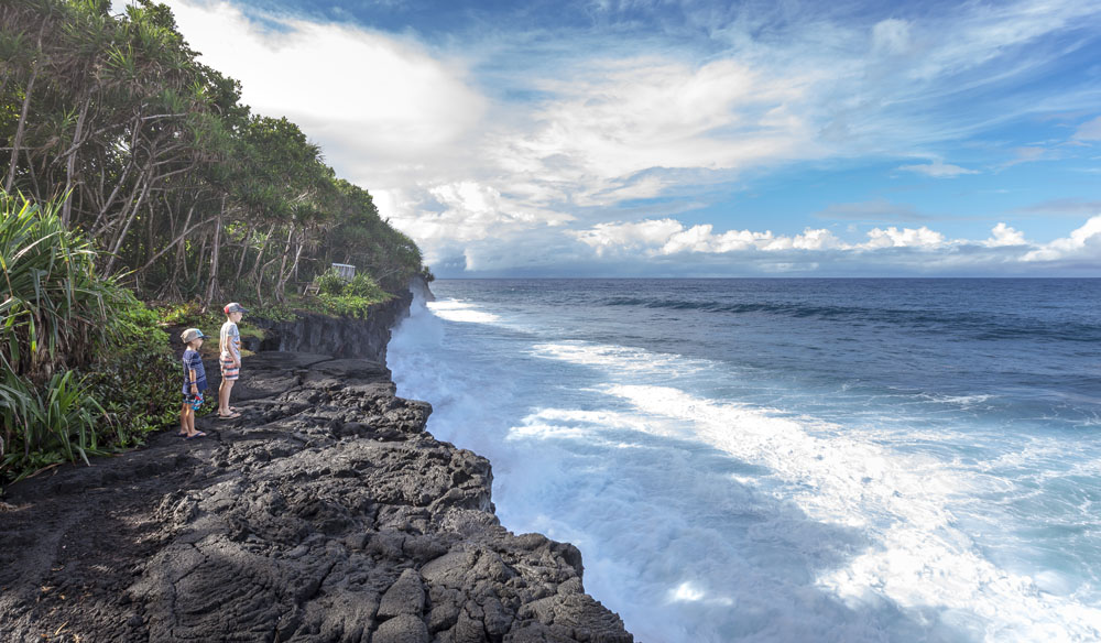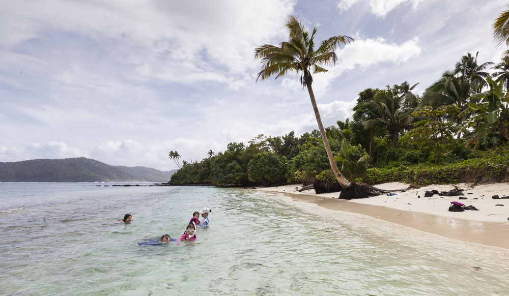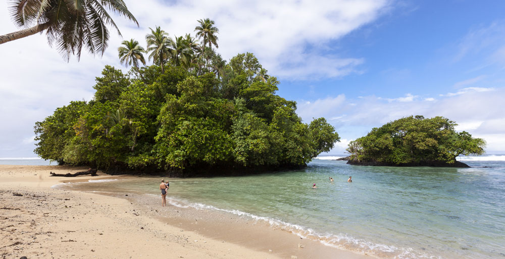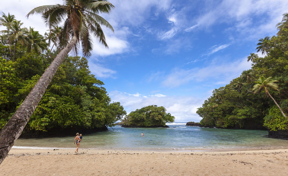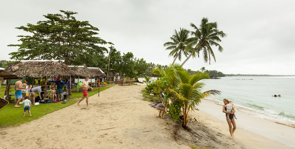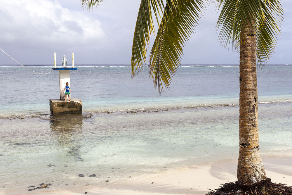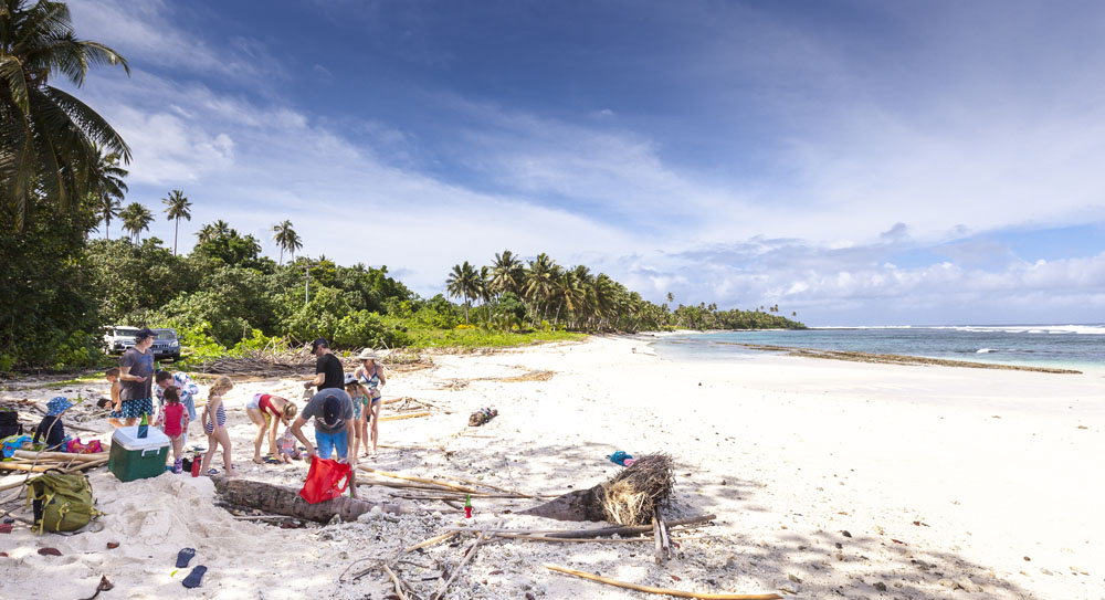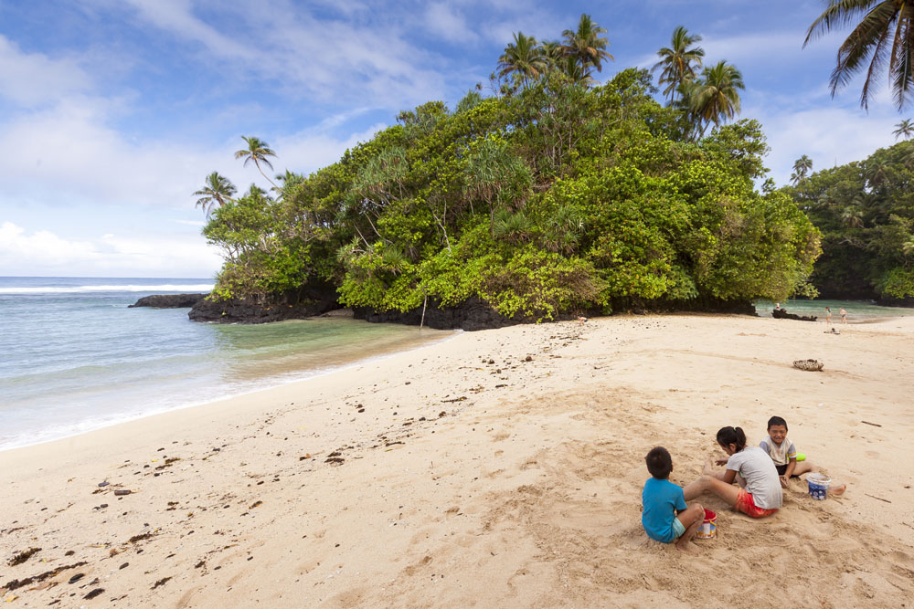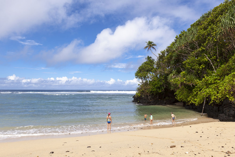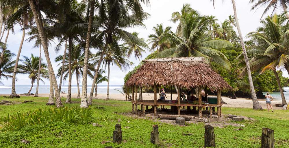 The Littles and Valtenbergs arrived a day earlier than the McCabes, on our first full day on the island we headed across the island to the south coast to explore some of the beaches around Savaia. The Samoans seem to have retained a lot of their traditional lifestyle, subsisting mainly on locally grown fruits and vegetables supplemented by fish. There was very little livestock farming evident on the island, though pigs and lots of piglets running across the road from the jungle was a pretty common sight. Most farming plots were small areas of jungle near the villages cleared to grow taro – an island staple – as well as all manner of tropical fruits. Most Samoans still live in traditional fales: open-sided houses with thatched roofs. The villages and roadsides across almost the entire island were amazingly well kept, manicured lawns and hedged tropical plants lining the borders of each village. It’s quite evident that the Samoans take a lot of pride in keeping their homeland tidy.