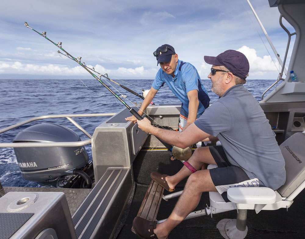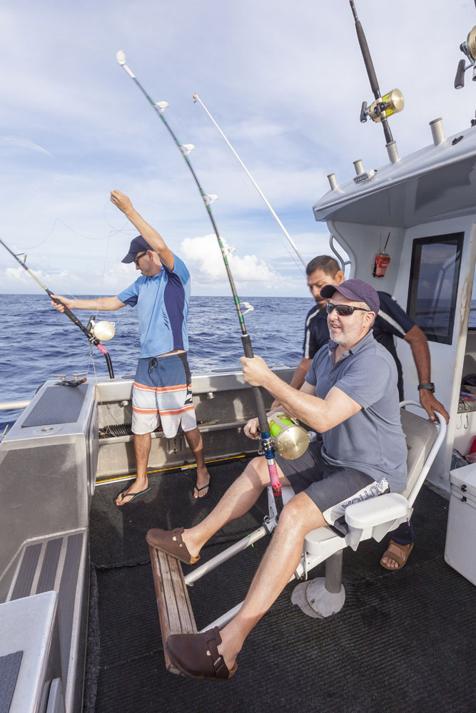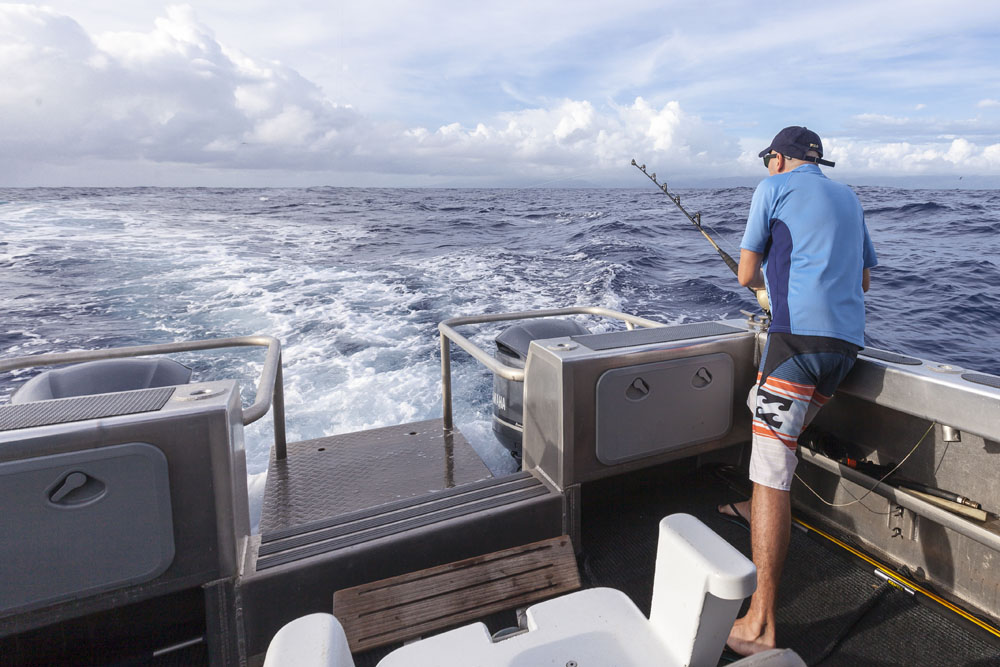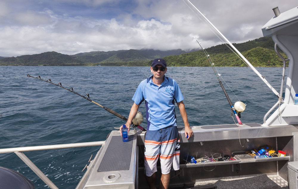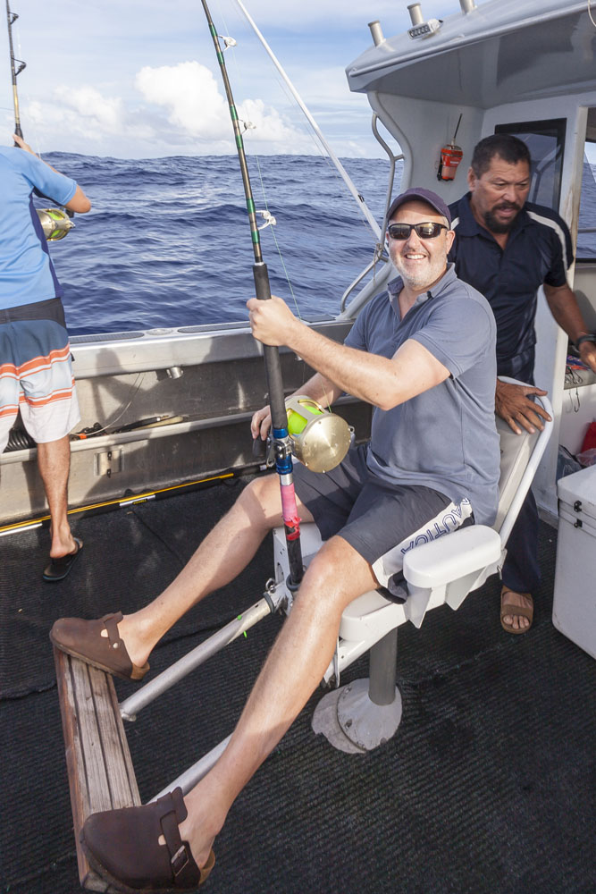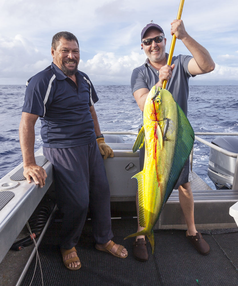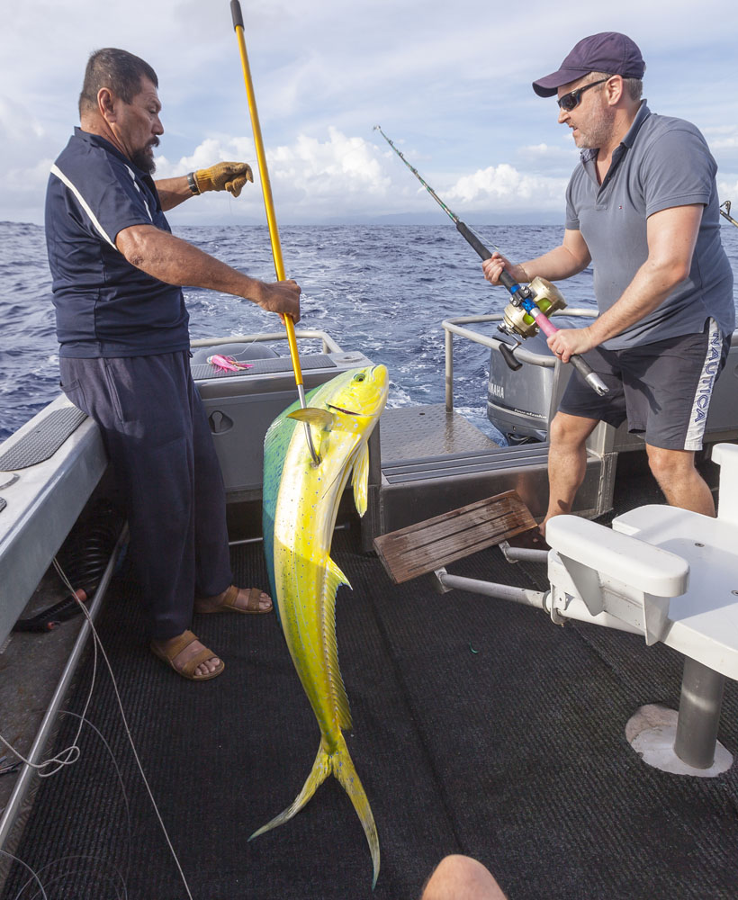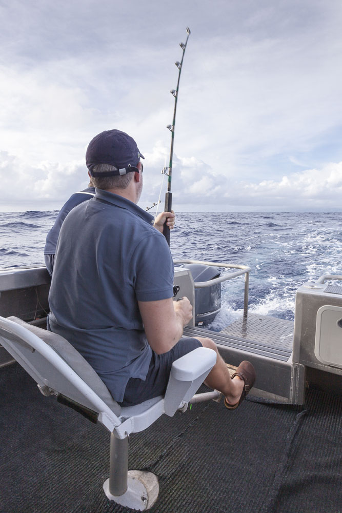 The girls were kind enough to handle the munchkins solo one morning so the boys could take a trip on a charter beyond the reef for a spot of game fishing. It was a beautiful sunrise as we motored out of Apia past the breakers, although the swells after the previous evening playing Liar’s Dice were a little too much for my stomach! We hunted for flocks of birds diving into bait balls, eventually trolling through one and hooking a roughly 7KG/15LB mahi-mahi (or masi-masi, as the locals call them). Matt was as happy as a kid in a candy store as he reeled in our first catch, the colors were amazing as our Tuvaluan skipper gaffed it into the boat. We trolled through another bait ball later in the morning and hooked another mahi-mahi but unfortunately it wriggled off the hook and we weren’t able to land it (although we could see its electric colors in the water as it darted back and forth on the lure). A long morning of trolling for our single fish, but much better than getting skunked and I’d have to rate mahi-mahi as one of the best tasting fish out there (especially when cooked by Chef Matt!). I think there was only one of nine dinners on Upolu when we didn’t eat fish, couldn’t get enough!
