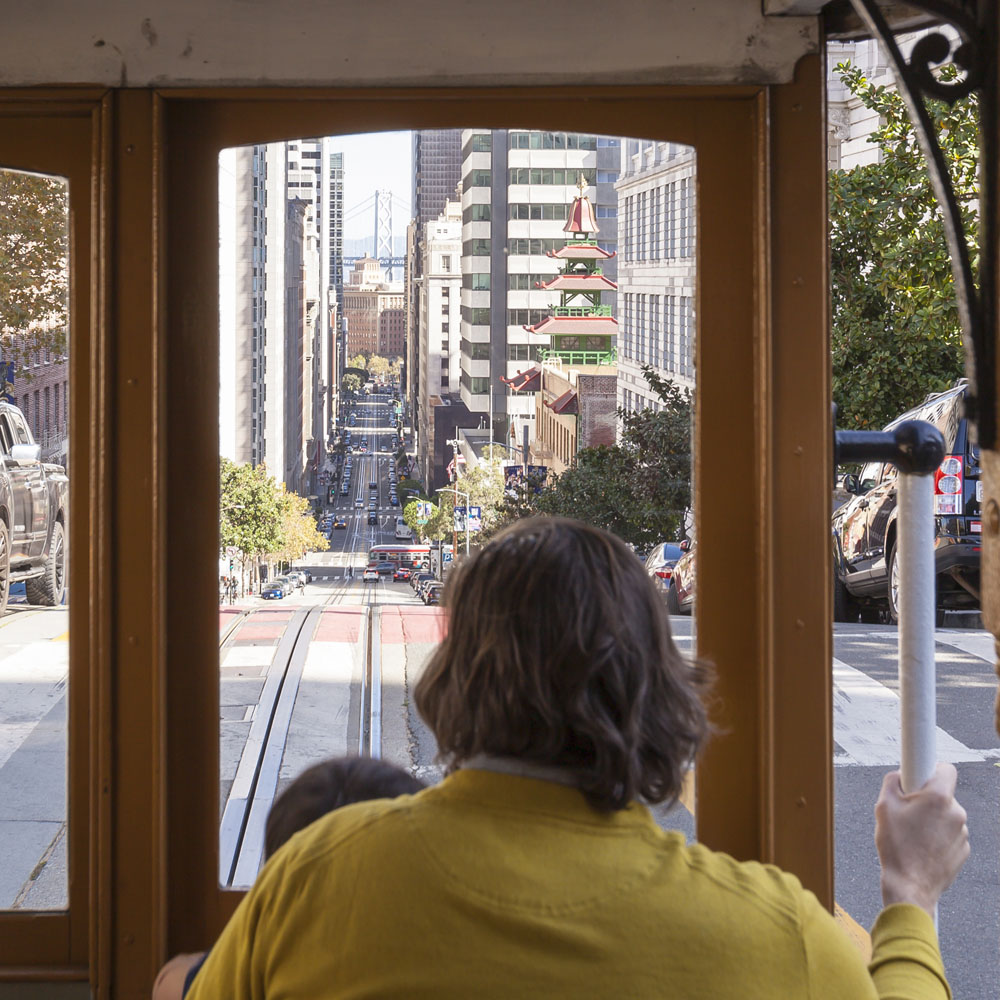Riding the cable car to the Ferry Building