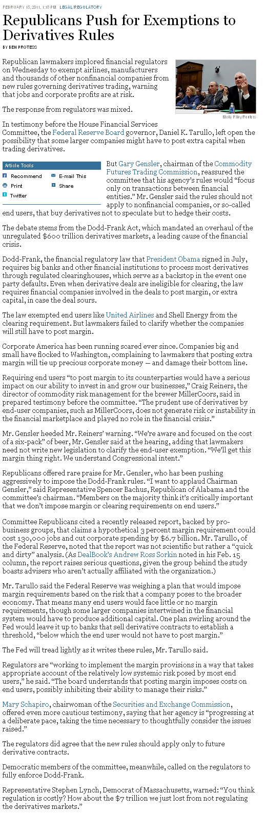 Financial MusingsNew Derivatives Rules for Financial Entities Written by Sam on February 15, 2011 More in Financial Musings: The End of the World is Just Beginning February 11, 2026 Wall Street Secrets for Tax-Efficient Investing September 14, 2025 Invested March 31, 2025Discover more from The Pink LemonSubscribe to get the latest posts sent to your email. Type your email… Subscribe