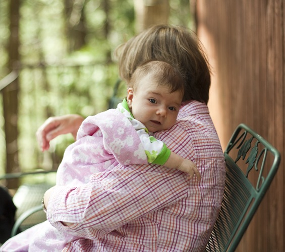 My mum was originally scheduled to come meet her first grandchild in September, but just before Lilia was born Mum decided she couldn’t wait and came for a quick visit starting on May 2. The visit started off a little rough: the cute outfit we had Lilia dressed in (pictured right) to meet Mum at the airport only lasted as far as the car before it was covered in spew! But everything else went smoothly, Mum was a great help to have around and it was nice for Lilia to meet her other grandma. Lilia definitely enjoyed being read to by Granny Jenni, quite intent on all the new sounds.
