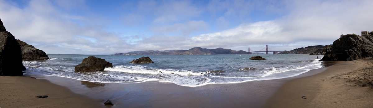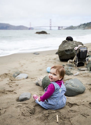 Lisa was working at a wine event today, so Tinkerbelle and I took advantage of the nice weather and spent a few hours hiking from the southern end of the Golden Gate Bridge to China Cove. It was quite a picturesque walk: down the bluff to Marshall Beach, over the old military bunkers above Baker Beach and then through the neighborhood of Seacliff where we took our time to take in some of the most exclusive real estate in San Francisco. China Cove is a secluded little spot tucked between Seacliff and Land’s End, it’s protected from the swells and afforded us a brilliant view of the Golden Gate. Lilia enjoyed herself in the sand for about half an hour before we both tucked into the lunch I brought in the pack. A very fun day, we’ll have to take Lisa back soon!