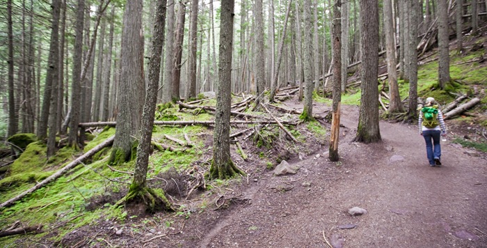 One of the most popular spots to take photos in Glacier is high up on the Continental Divide overlooking picturesque Hidden Lake. On our second day in the park we ventured out early after breakfast, stopping off at tranquil Sunrift Gorge for a few photos before the sun broke through the forest and took a short walk down to Baring Falls while we were in the area. Always a little nerve racking walking through the woods when there’s bear excrement on the forest floor, but we tried to make as much noise as possible and Lisa had a can of pepper spray at the ready should worse come to worst. Fortunately the only place we ran into a bear was alongside the road on the way up to Hidden Lake, but we were expecting to see one around every blind corner on the hiking trails in the park!