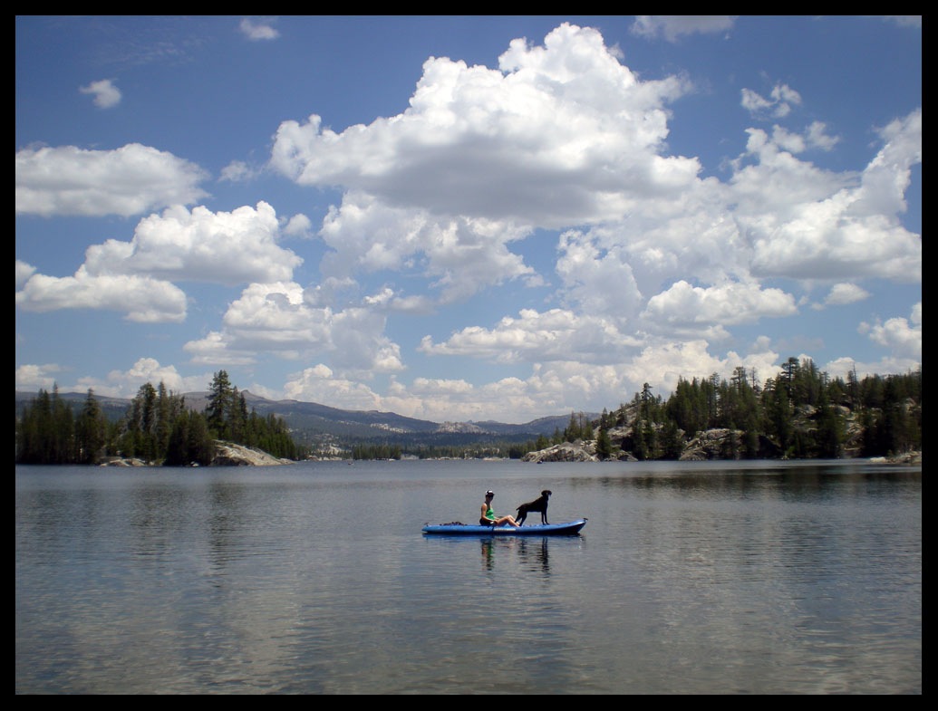 Princess Ellie (left) and Greg paddles across Utica (right)