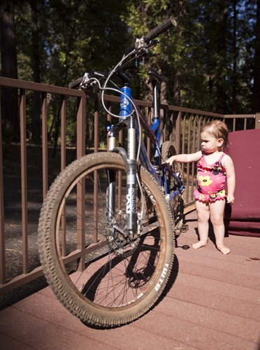 Mum was a pro with Lilia within a day or two, cooking her up all manner of delicacies for breakfast every morning before it was time to go to daycare and spoiling her rotten with as many berries – definitely Lilia’s favorite food at the moment – as she could stomach. I took a few days off work during Jenni and Steve’s stay and we all headed up to the cabin in Arnold to enjoy some of the final days of summer. Unfortunately Lisa was busy with harvest so couldn’t join us, but Carol and Greg – the other set of grandparents – dropped in for a few days on their way back from Nevada. Nice that Jenni and Steve could catch up with them during their visit as well. With four babysitters on hand I made the most of our time in Arnold by getting in a few rides on the bike, Lilia always stoked to have so much adult attention on her at once. We had beautiful weather up at the cabin for the four days we were there, plenty of swimming and relaxing on the deck in the summer sun. Randy and Gail had just finished the new river stone fire hearth behind the cabin and we were lucky to be the first ones to try it out, a very nice setup that was put to the test a few times during our stay.