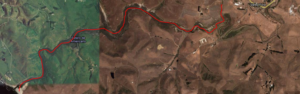 Our route out Estero de Americano from Valley Ford to the ocean.
