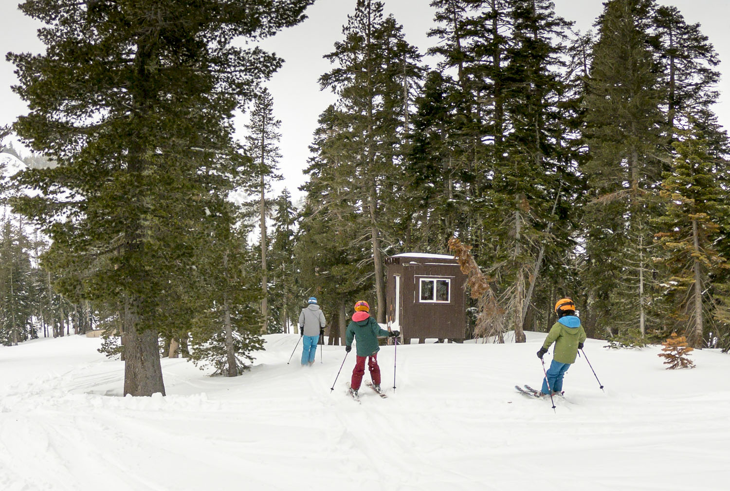 Unfortunately Amy had to bid us farewell on day three – someone’s got to bring home the bacon – but fortunately for us the crowds disappeared with the weekend and we enjoyed some empty slopes at Alpine on Monday. We settled into our schooling groove: a few hours of skiing in the morning, followed by lunch back at the cabin, schoolwork in the afternoon, then sledding and cave building in the snow outside. We’ve been quite fortunate with our little Alexander Valley school pod during COVID – especially with the kids’ homeschooling teacher Emily – but it sure was nice to have a bit of a change of scenery for the week.
