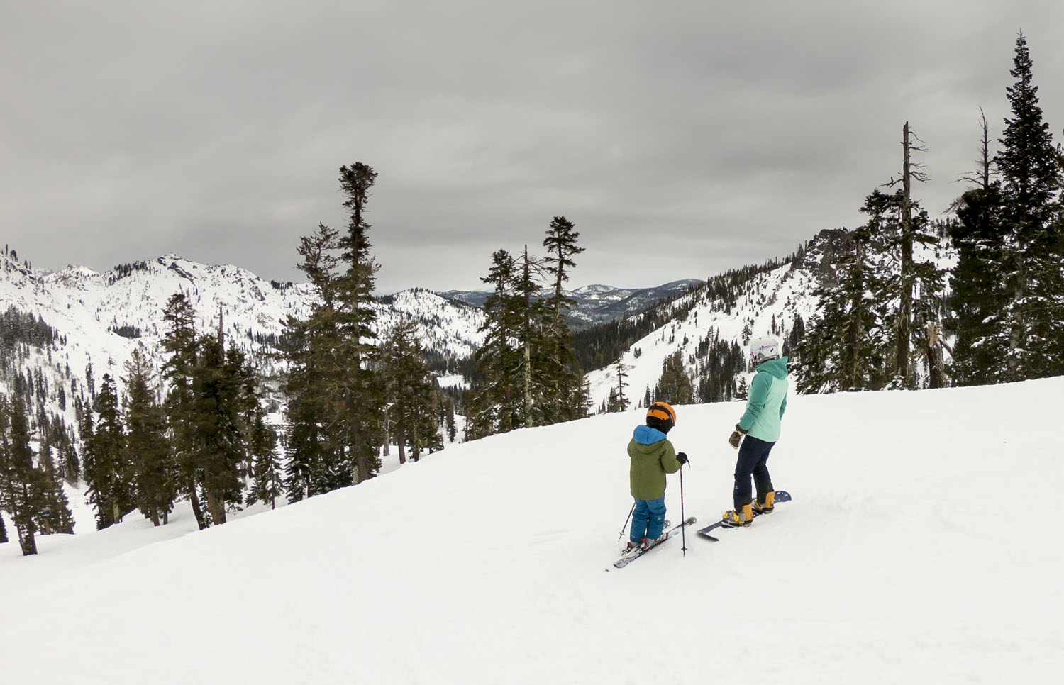 The storm delivered 16 inches of powder to the peaks at Alpine Meadows, it was classic Sierra snow (= heavy) but great to get out amongst it. The parents were motivated to stay a little longer before schoolwork began on day five, so we packed lunches and scoffed them down in the parking lot so we could stretch the kids a little longer on the fresh snow. A few grumbles from the grommets about schoolwork after a full day on the slopes, but we got it done and it was worth the complaints to take advantage of the fresh pow.