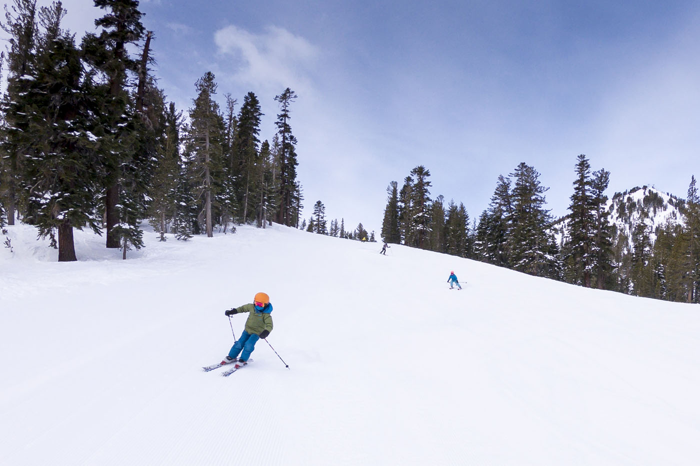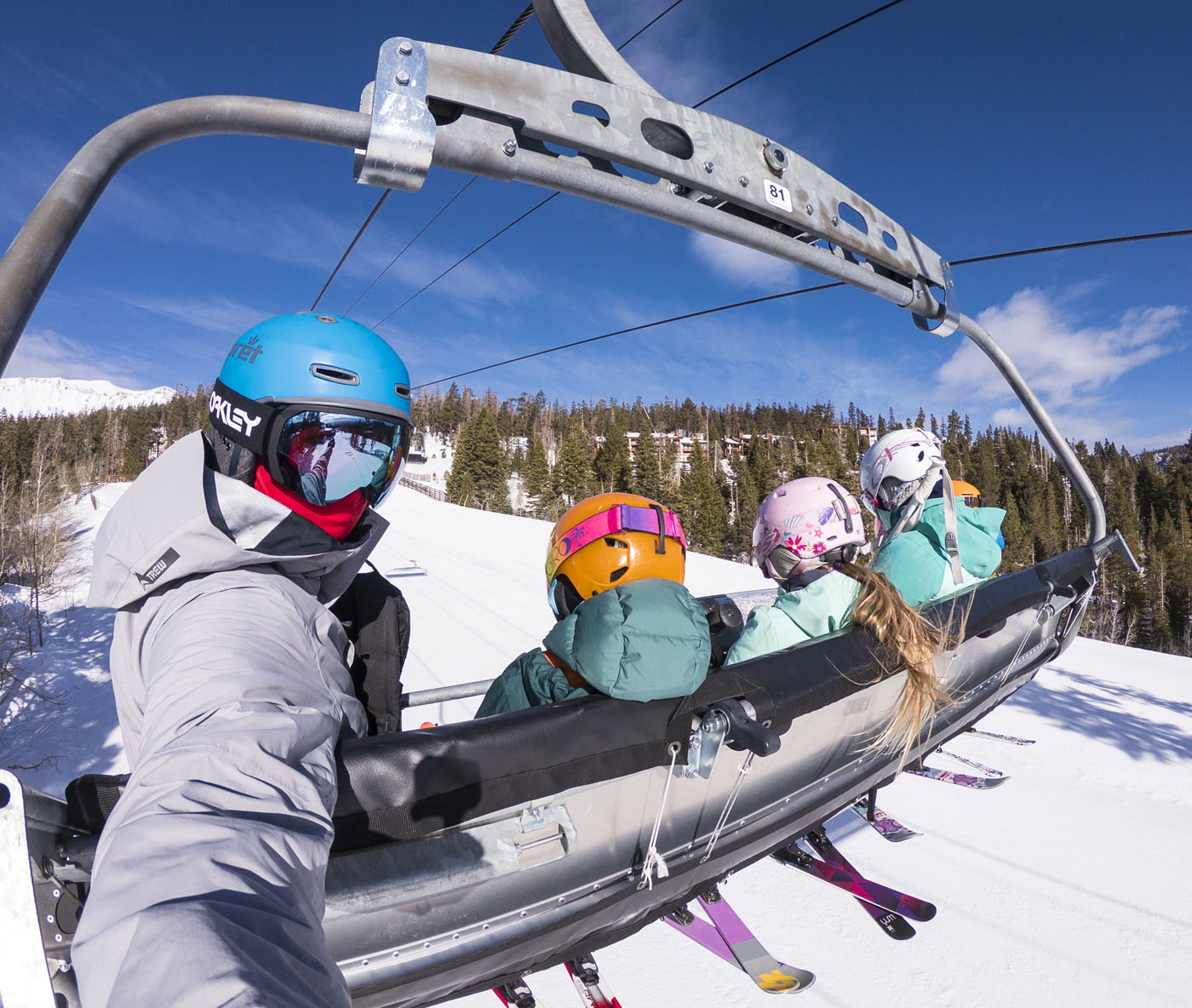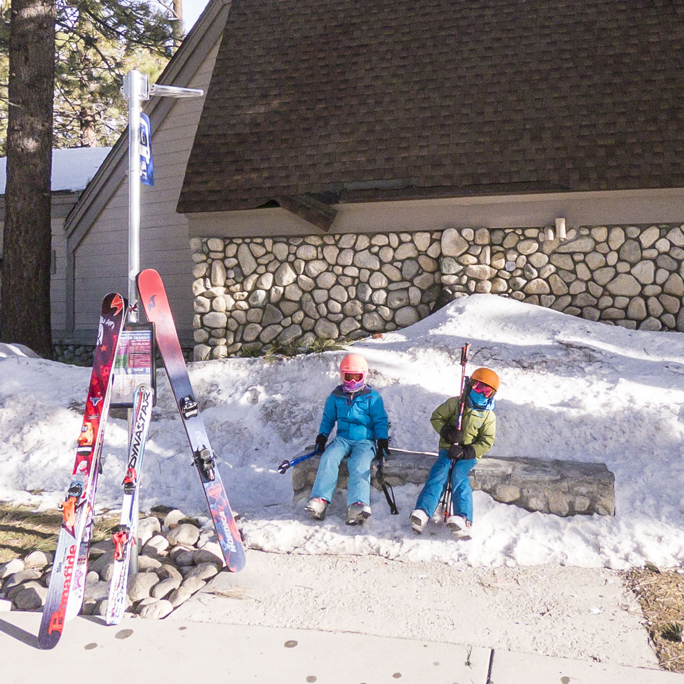 June Mountain is a roughly 30 minute drive north of Mammoth just off Highway 395, a stone’s throw from the tiny mountain town of June Lake. One of Lance’s friends – who is a ski patroller at Mammoth – suggested we hit the resort on one of our days in the area: even though June is only a little more than a third the size of Mammoth, he mentioned it is great for families and has excellent tree skiing. We weren’t disappointed! The slopes received another few inches of fresh snow the night before we skied June, making for another bluebird powder day amongst the exceptional gladed runs off of Chair 4 and Chair 7. Max and Cam were having an absolute ball (listen for their squeals in the vid below)! Unfortunately Cam tweaked her leg on the last run before lunch so had to sit out the afternoon with Lance in the lodge, but after some expert ice wrapping from Lance that evening she was rearing to go the next day (phew…).
