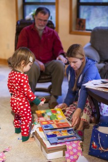 Lisa and Lilia picked me up in Sausalito on my way home from work on Christmas Eve and we all headed north, bound for Grandma and Grandpa’s house. After a quick bite for Lilia we made our way into Santa Rosa to one of the mostly extravagantly lit streets I’ve ever seen, I could just imagine all the homeowners plotting for months leading up to each Christmas in an attempt to outdo their neighbors. One of the standouts was a Southpark-themed house that had a light show synchronized to music at the top of each hour between 6:00PM and 9:00PM. Lilia had a blast exploring all the different yards full of lights and made some new friends at one of the nativity scenes, hugging and kissing each wise man in the nativity scene!