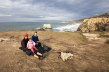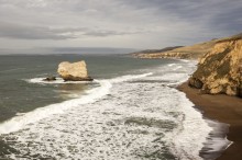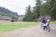 We executed a well planned mission out and back to Point Reyes National Seashore this morning, making it home in time for Tinkerbelle’s nap (phew!). We ducked into the Bovine Bakery in Point Reyes Station on the way to the Bear Valley parking area, no way can I miss an opportunity to grab one of their chicken and pesto croissants! The six miles on our bikes and two miles on foot were well worth it: we had Arch Rock and sweeping views of Point Reyes National Seashore all to ourselves while we munched on brunch, a magic morning out there.