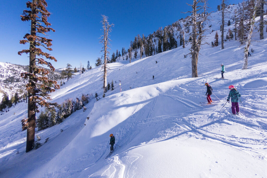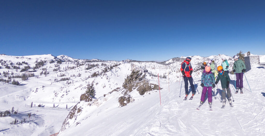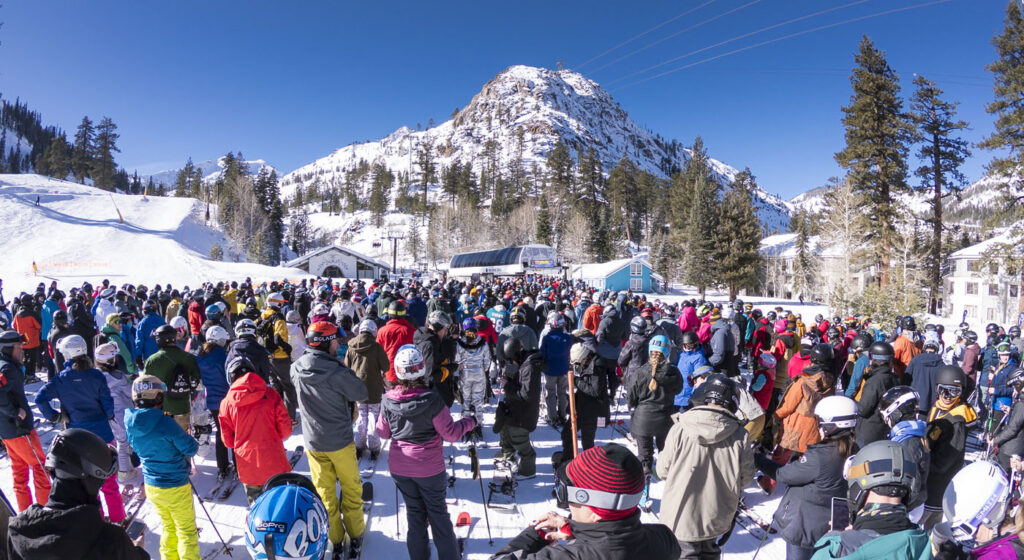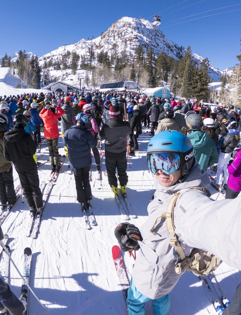 For our last day in Tahoe we all enjoyed finally being back on the slopes with the Munselle family, our stalwart ski companions since the four of our kids were in kindergarten. The conditions at Olympic Valley were exceptional, with more than a foot of fresh snow on the upper mountain and cloudless skies. The only problem was Palisades ops: the gondola was on mechanical hold until after lunchtime, Squaw One didn’t open until mid-morning and the tram had a wait of almost an hour. You’d think a corporate behemoth like Alterra would put some extra staff on for the busiest week of the year. The Christmas week crowds and operations troubles meant our first three runs took more than three hours. Yes, I was ready to explode. It was the worst resort crowds I’d ever experienced by a country mile. We eventually bit the bullet and lined up for Squaw One (photos of the crowds below), which was without a doubt worth the wait when we finally made it to the upper mountain. The eight of us lapped Siberia Express all afternoon, enjoying as much of the dry powder as we could get. Lance, Lisa, Max and I were one of the last chairs up Big Blue for the day. Solid. So great to see the kids all back together feeding off each other’s stoke.