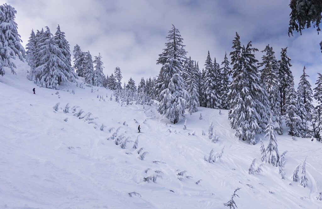 Out first couple of days skiing Alpine were complete opposite ends of the spectrum: day one was spring skiing conditions in mid-December, while on day two a warm storm came in that had rain pouring at the resort base. Day two was some of the wettest conditions I can remember since I was a kid in Australia skiing in a garbage bag with rubber kitchen gloves. The temps cooled down a little by early afternoon and the resort opened some of the more advanced lifts, we were some of the few skiers on the mountain and enjoyed top of bottom fresh tracks on Roundhouse for the few runs before we were soaked to the core. Even Gore-Tex eventually succumbs to hours in the rain. Wet, but a lot of fun.