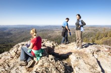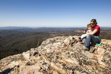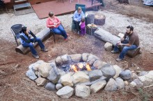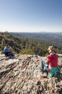 We took advantage of the long weekend for President’s Day and headed up to the mountains for a few days at the cabin, some magic weather for our three nights in Arnold (71F [21C] in the middle of winter!). Suzanne accompanied the three Valtenbergs in the truck, and the Justices met us up there on Saturday for a fun weekend with replete with snowshoeing, plenty of good fires in the new pit out the back and a memorable hike up to Cougar Rock. Cougar Rock is always a nice walk from the cabin, but this particular adventure was made all the more momentous by the fact that Lilia hiked almost the entire way up to Cougar Rock by herself. It’s by far the longest we’ve ever seen her walk alone, let alone along a steep, upwardly sloping hiking trail!