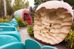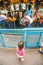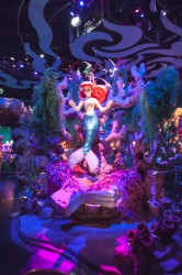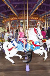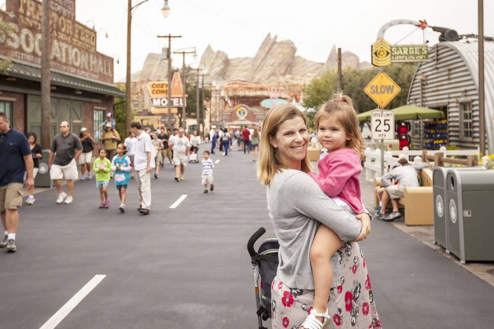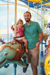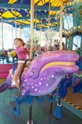 We spent our first morning at California Adventure, entering the park an hour before official opening (“Magic Hour” is for Disney resort hotel guests only) and covered most of the rides designed for toddlers and preschoolers within the first 90 minutes. I ducked into the singles line at the new ride based on the Cars movie, a hell of a lot of fun although I don’t think I would have waited the 60-90 minutes required of patrons in the regular queue. King Triton’s Carousel (a merry-go-round) at Paradise Pier was definitely Lilia’s favorite at California Adventure. We rode the carousel three times in a row, and probably would have done it another five if Lilia had her way!