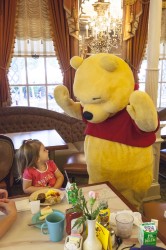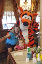 With Lisa’s work obligations out of the way, the three of us spent Saturday in Disneyland. We were told that we should again take advantage of the “Magic Hour” to experience the Finding Nemo Submarine Voyage because of lengthy waits during the park’s regular hours. We were the first ones on the ride shortly after 7:00AM, a very fun underwater adventure in a submarine lead by an Aussie-accented skipper through Nemo’s world. We had reservations to dine with all the Disney characters shortly after we’d finished in our submarine, it again took Tinkerbelle a little while to warm up to the characters but by the end of breakfast she was playing peek-a-boo and taking photos with everyone (except Captain Hook who, I will admit, was huge). We spent the remainder of the morning sampling the best of toddler-friendly Disneyland rides, the carousel again featuring high on Lilia’s list. She was even game to try a roller-coaster just before lunch, I have a feeling it was a little more than she bargained for (she met the height limit by about a quarter of an inch) but she toughed it out with no tears. There’s a video of it from Lisa’s iPhone here, we’re the ones in the first carriage.