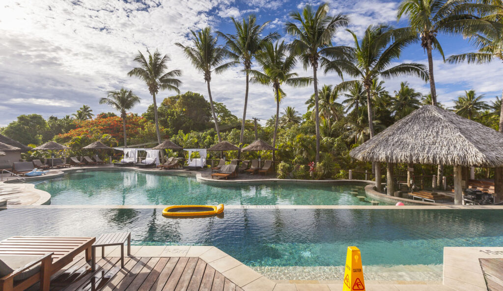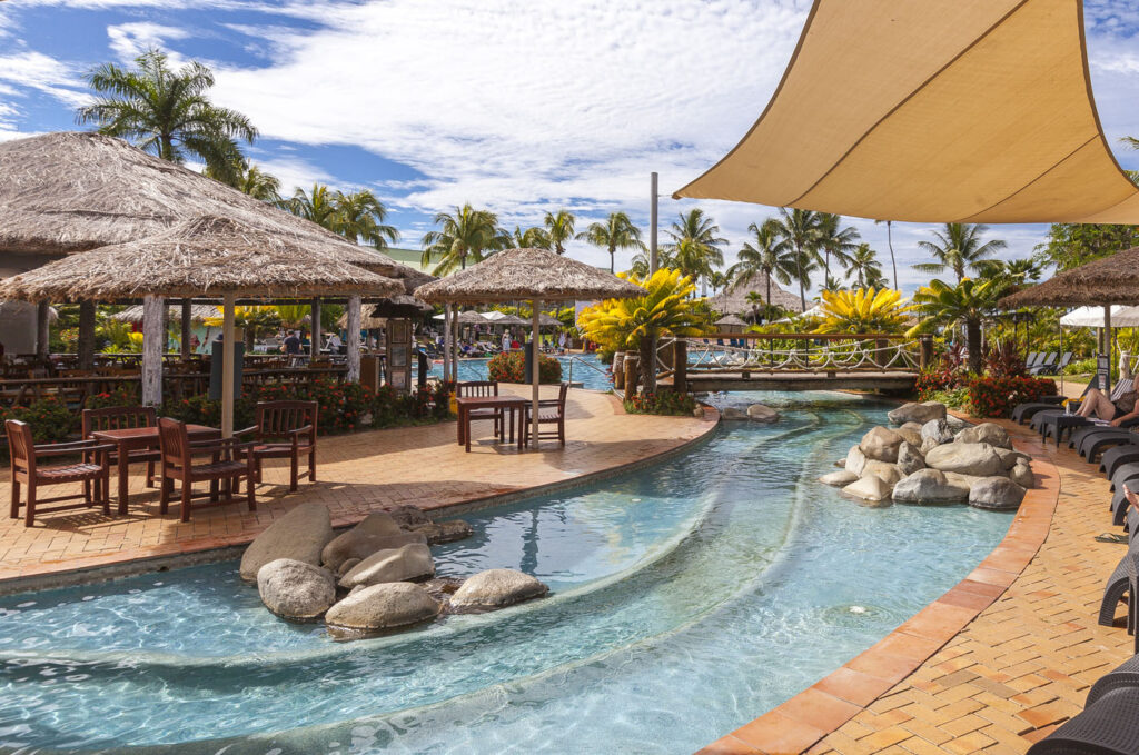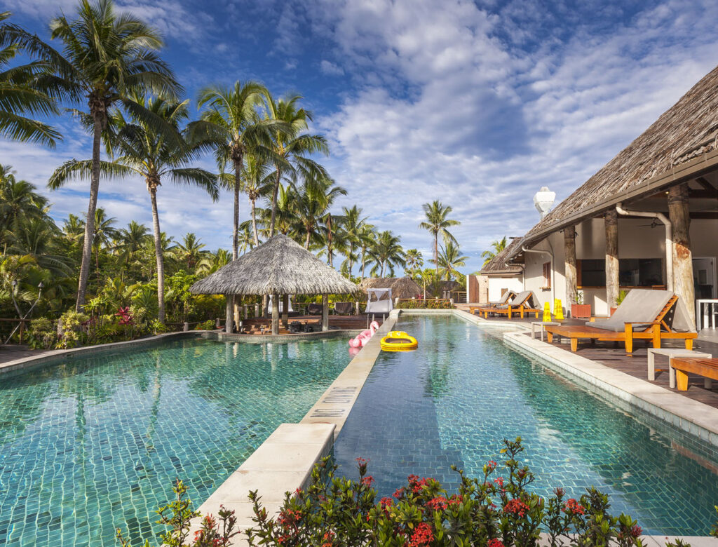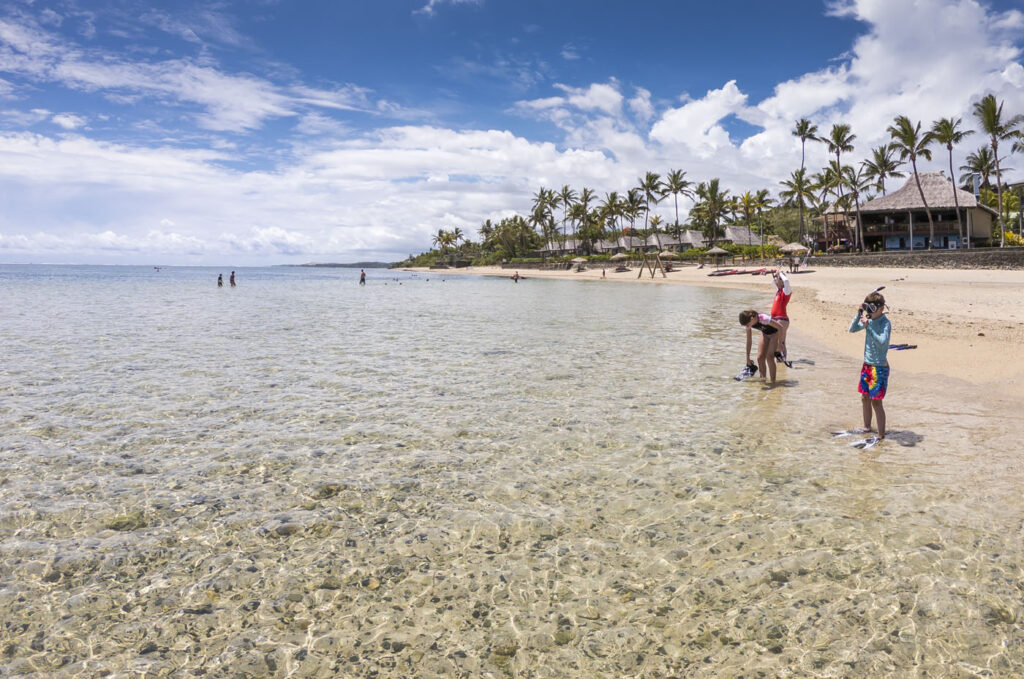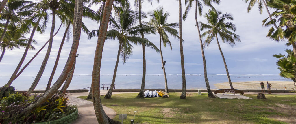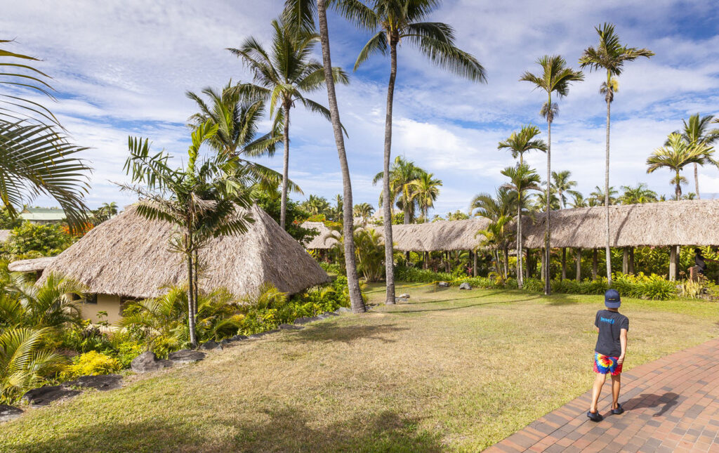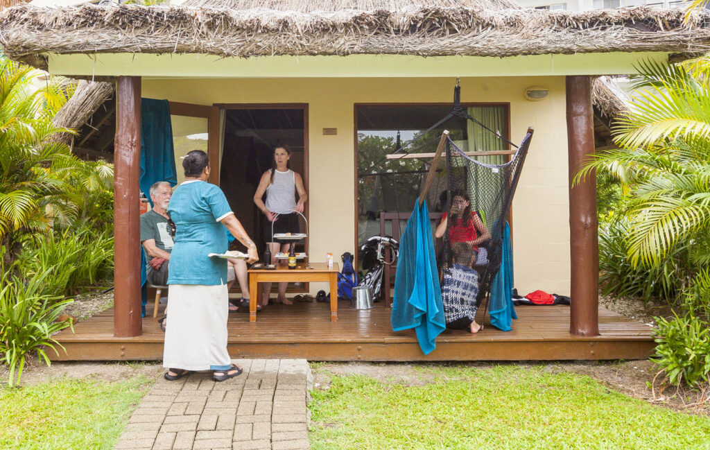 It was about an hour-and-a-half drive from Nadi International Airport to the town of Korotoga on Viti Levu’s southern coast, we didn’t see much as we drove through the night as most of the main island’s roads are devoid of any kind of street lights. About the only thing I had to watch out for was the occasional stray dog or cow venturing onto the road! Our digs on the Coral Coast’s Outrigger Fiji Beach Resort were quite idyllic: a sprawling campus of bures (bungalows) spread out around multiple pools and a picturesque beach fringed by coconut palms. Classic South Pacific island accommodation. The resort was very targeted towards families with kids – which our two kids were 100% onboard with – but there was a beautiful adults only area in a corner of the resort where one (Lisa and I included!) could escape the mayhem of the main pool with its waterslide and in-pool volleyball court.