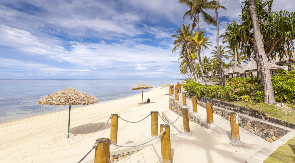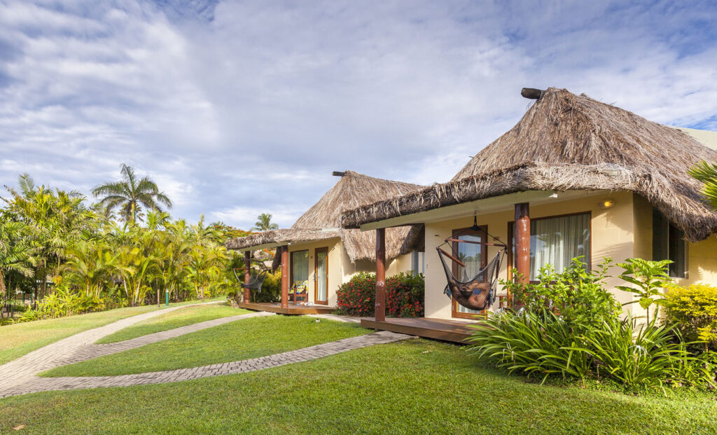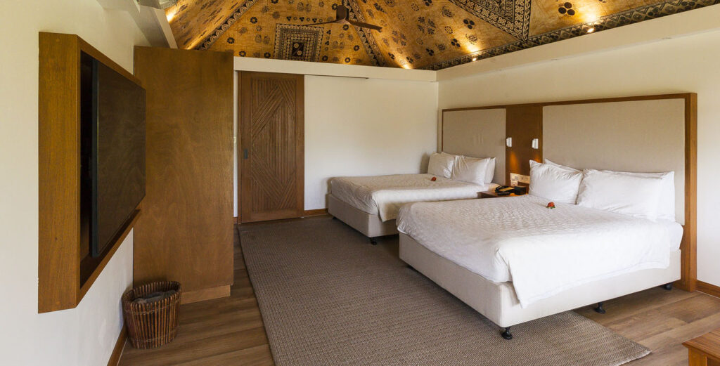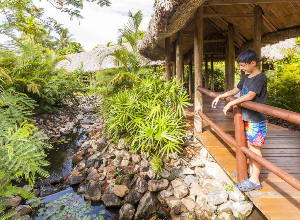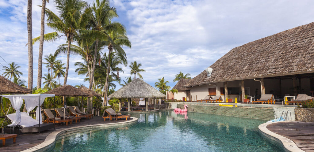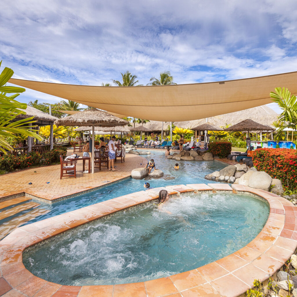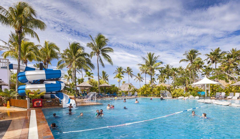 It was about an hour-and-a-half drive from Nadi International Airport to the town of Korotoga on Viti Levu’s southern coast, we didn’t see much as we drove through the night as most of the main island’s roads are devoid of any kind of street lights. About the only thing I had to watch out for was the occasional stray dog or cow venturing onto the road! Our digs on the Coral Coast’s Outrigger Fiji Beach Resort were quite idyllic: a sprawling campus of bures (bungalows) spread out around multiple pools and a picturesque beach fringed by coconut palms. Classic South Pacific island accommodation. The resort was very targeted towards families with kids – which our two kids were 100% onboard with – but there was a beautiful adults only area in a corner of the resort where one (Lisa and I included!) could escape the mayhem of the main pool with its waterslide and in-pool volleyball court.