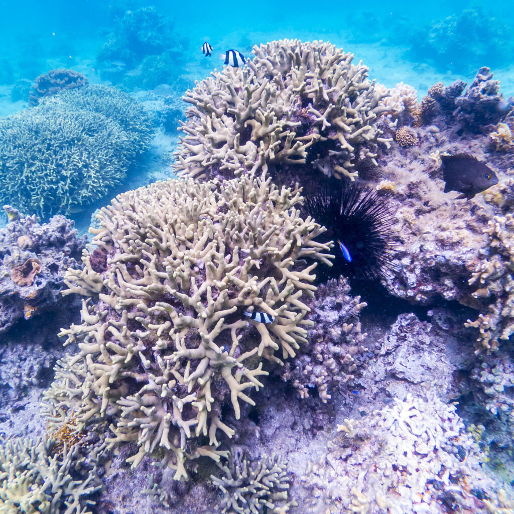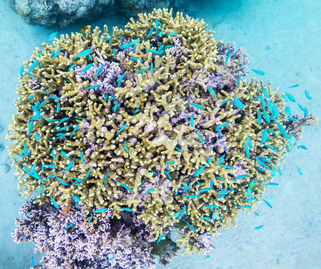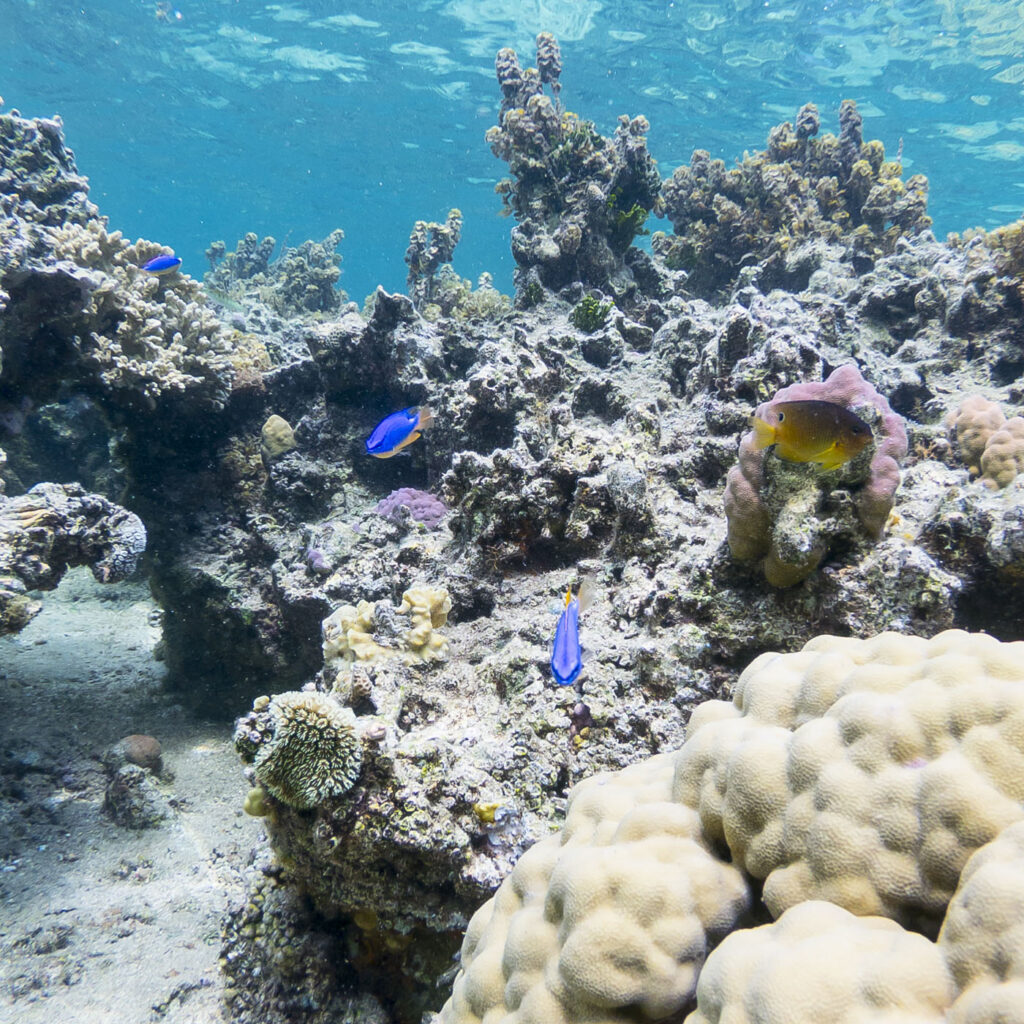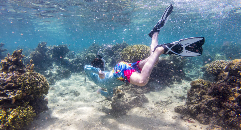 The lagoon inside the barrier reef in front of the resort was a perfect spot to explore Fiji’s underwater world. Full of coral and an amazing assortment of small sea life, we all had a ball snorkeling in the shallows at high tide. So many amazing colors when the sun was on the water. The resort staff recommended only snorkeling the lagoon at high tide to avoid scraping on the sharp coral, so we were pretty lucky that high tide coincided with the early afternoon during our days on the island.