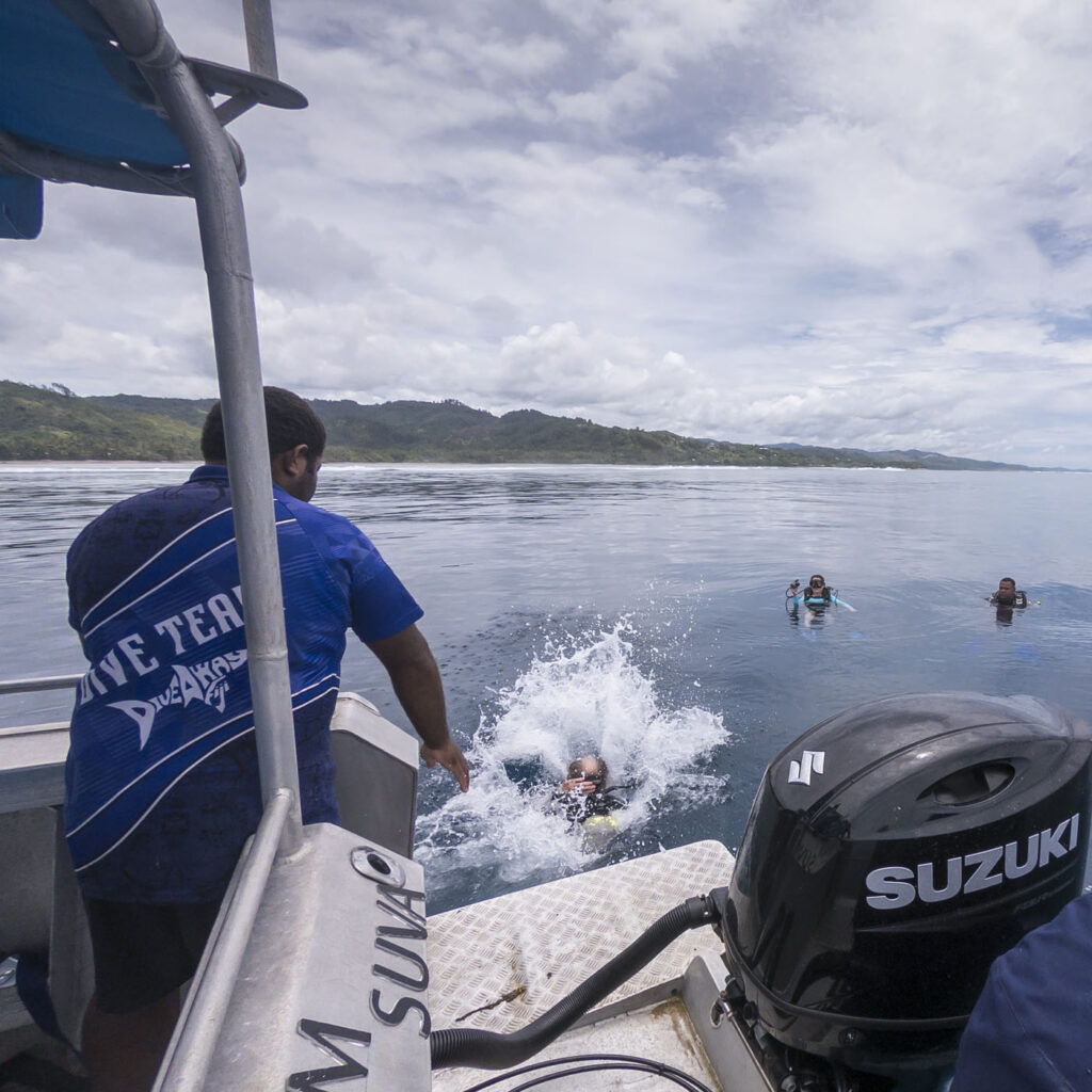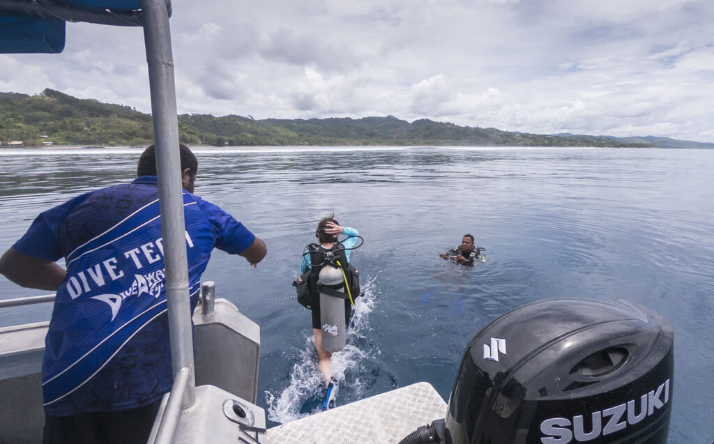A visit to the South Pacific wouldn’t have been complete without a SCUBA dive or two, so Greg, Kathi and I ventured east from the resort one morning to spend some time with Diveaway Fiji on a couple of their sites near Tagaqe. I didn’t realize Kathi had 140+ dives under her belt until I saw her in the water with her SCUBA gear on, lots of fun diving with such a seasoned pro. The coral on our first dive site at The Edge was very impressive, was also fun to see a turtle following us in the deeps along the coral wall as we dove. Our second dive site at Fanny’s Hill was the standout for me, though: awesome to be a few feet away from six grey and black tip reef sharks as they were having their teeth cleaned. I think it was 2010 off Lizard Island in northern Queensland since I’d been in the water with that many sharks so close. Good times. My GoPro couldn’t handle the depth associated with our SCUBA dives so I had to leave it in the boat, but I did take Lisa and Lilia back to one of the dive sites the next day with snorkels (while poor Max was on the beach crook with food poisoning!) to show them some of the amazing coral and sea life.