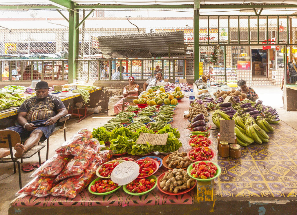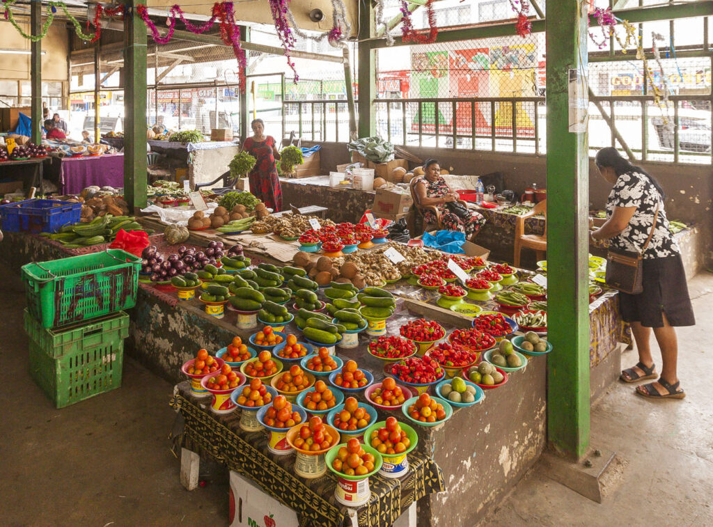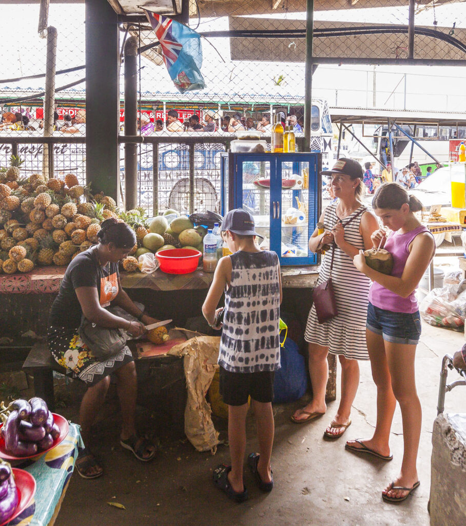 On of my favorite parts of traveling to new places – especially in countries that still rely on locally grown produce for the bulk of the food economy – is visiting town markets. We ventured into nearby Sigatoka – one of the main hubs on Viti Levu’s southern coast – one lunchtime to check out the central market and find a bite. Such fun! All the fresh fruits and vegetables on offer were a sight to behold, everything from tropical fruits like magoes and pineapples and jackfruits to locally grown kava (a hallucinogenic root) and a plethora of fresh spices from the island’s Indian population. I sought out one of my favorite Fijian dishes – street roti – and had the rest of the crew gnawing on one each for lunch, such delicious flavors and hard to pass up for US$0.80 each.